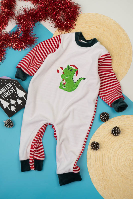 Скоро зимові свята і для багатьох малюків вони будуть першими в їх житті. ТМ «Гном» пропонує тематичний комбінезон для самих малих клієнтів. Комбінезон скомбінований з однотонного та принтованого матеріалів та прикрашений вишитим Дракончиком. На плечі та між ніжок проходить застібка - кнопки. Модель пошита з м’якого трикотажного велюру. Велюр - красивий, натуральний матеріал з оксамитовим ворсом з одного боку і гладкою поверхнею з іншого. Це гіпоалергенний матеріал, повітропроникний і гігроскопічний. Рекомендований догляд - прання вручну або в пральній машині при температурі не вище 30-40°C в «Делікатному» або «Ручному» режимі. Віджимання повинно бути легким на мінімальній кількості оборотів. Для сушіння рекомендується горизонтальна поверхня далеко від сонячних променів. Прасування тільки з виворітного боку.