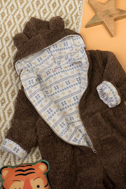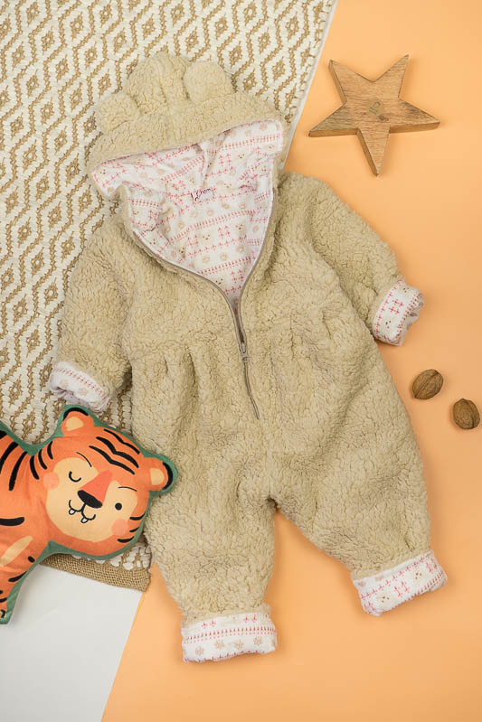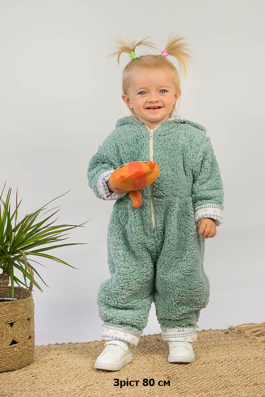 М’який та теплий демісезонний комбінезон від ТМ «Гном» виготовлений для малюків від 6 до 18 місяців. За допомогою відворотів на рукавах та штанах, його можна регулювати на виріст. Модель об'ємного вільного крою з застібкою – змійка та капюшоном, який прикрашений вушками. В такому комбінезоні ваш малюк буде виглядати як миле ведмежатко. М’який та пухнастий матеріал вдало поєднується з підкладкою - щільним велюром на бавовняній основі, через що комбінезон не пропускатиме холодне повітря. Основний матеріал – це штучне хутро «Тедді». Хутро має тканинну основу з хорошою еластичністю. На дотик тканина м'яка. На лицьовій стороні має невеликі букле-барашки, які створюють об'єм. Матеріал не мнеться та не потребує складного догляду. Рекомендується делікатне прання в теплій воді.