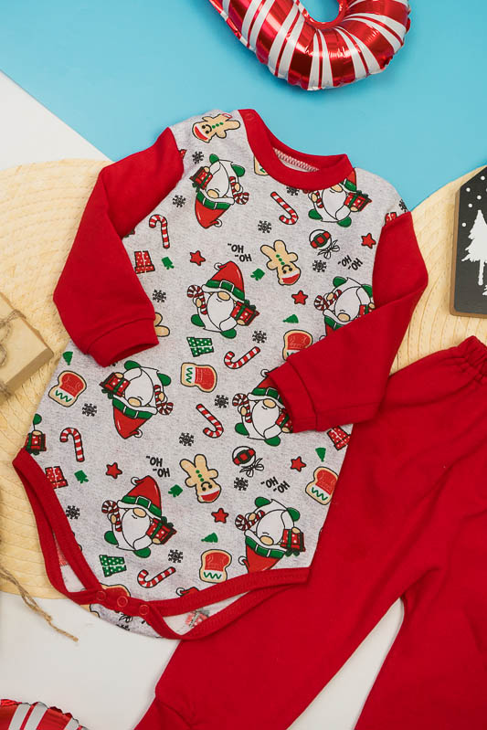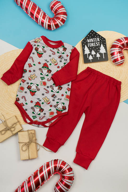 М'який та зручний комплект для малюків від ТМ «Гном» складається з боді та штанів на манжетах. Боді на подовжений рукав має на плечі застібку - кнопки. Комплект виготовлений з теплого й тонкого трикотажного полотна - начісний футер. У цього полотна лицьова сторона гладка, а виворітна з м'яким легким начосом. Начос досить міцний, тому витримає будь-які навантаження, навіть самі інтенсивні рухи не викличуть зламів або складок на речах. Полотно стійке до появи затягувань і ковтунів. Вироби з такого матеріалу зручні, практичні та прослужить Вам дуже довго. Однак є деякі негативні моменти - матерія погано реагує на вплив прямих сонячних променів і високих температур при пранні. Тому, щоб виріб не дав усадку, прати його рекомендують при температурі не вище 30-40°C.