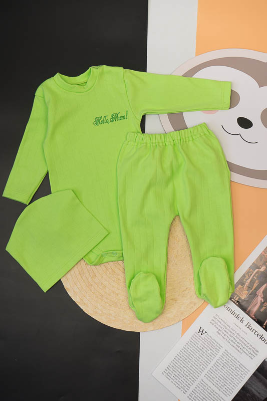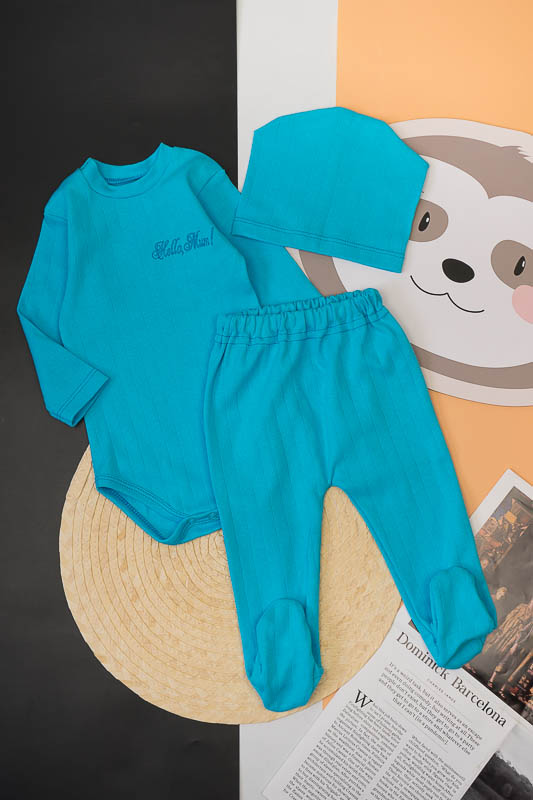 Комплект від ТМ «Гном» виготовлений для малюків від народження до 9-12 місяців. Складається він з боді на довгий рукав, повзунів та шапочки. В такому комплекті ваша дитина буде почуватися затишно і комфортно. М'який та приємний до тіла матеріал вдало поєднуються зі зручним кроєм. Боді має на плечі застібку - кнопки. Передня частина виробу прикрашена вишитим написом. Комплект виготовлений з трикотажного полотна – інтерлок, основою якого є бавовна. Саму назву матеріал придбав у зв'язку зі своєрідним переплетенням його волокон. Це полотно дуже м'яке і ніжне, тому рекомендується для пошиття дитячих виробів. Воно володіє підвищеною теплоізоляцією, тому збереже тіло Вашого карапуза в теплі та комфорті. При пранні рекомендується вибирати делікатний режим або режим ручного прання, температура повинна бути не вище 30°C. Інтерлок абсолютно нешкідливий і підходить для дитячої чутливої шкіри.