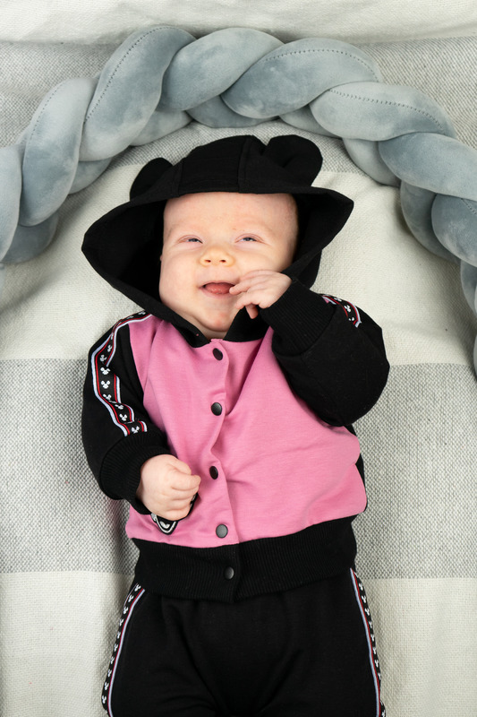 В яскравому та цікавому костюмі від ТМ «Гном» ваша дитина буде виглядати мило і привабливо. Кофточка прикрашена термоаплікацією, а капюшон вушками. Застібкою є кнопки. Манжети костюма виготовлені з м’якого еластичного матеріалу. Завдяки вдалому крою, костюм не сковує рухи малюка. Таким чином, модель вдало поєднує комфорт і зручність з її загальним виглядом. Виріб пошитий із щільного та м'якого трикотажного полотна – двунитка піньє (80% бавовна, 15% поліестер, 5% еластан). Ще його називають футер-стрейч. Поєднання базових властивостей трикотажу та ефекту від додавання у в'язку футерної нитки повідомляє матеріалу наступні властивості: добре вбирає вологу; ефективно пропускає повітря; має високу теплоощадну здатність; не утворює пилок (ковтунів); не витягується при носінні; простий у догляді. Виріб слід прати у теплій воді. Температури води, що дорівнює 30° C, буде достатньо для якісного прання матеріалу. Від прасування краще відмовитися або ж прасувати із застосуванням пару з виворітного боку.