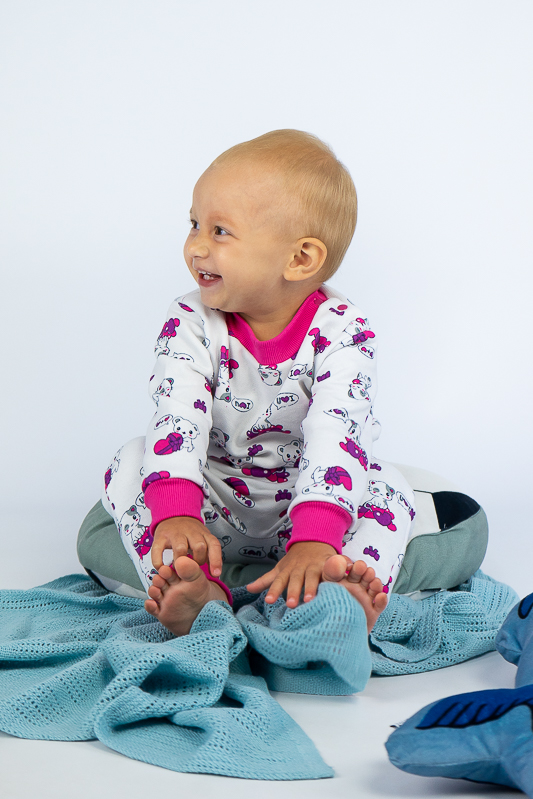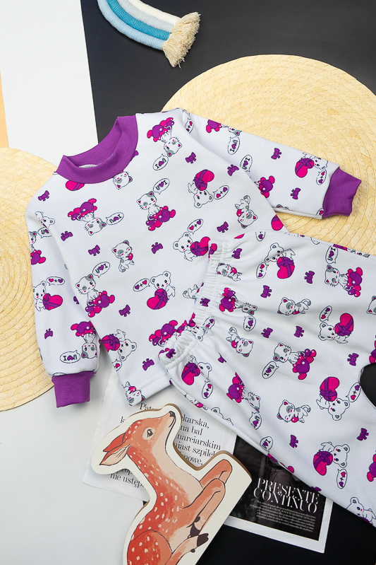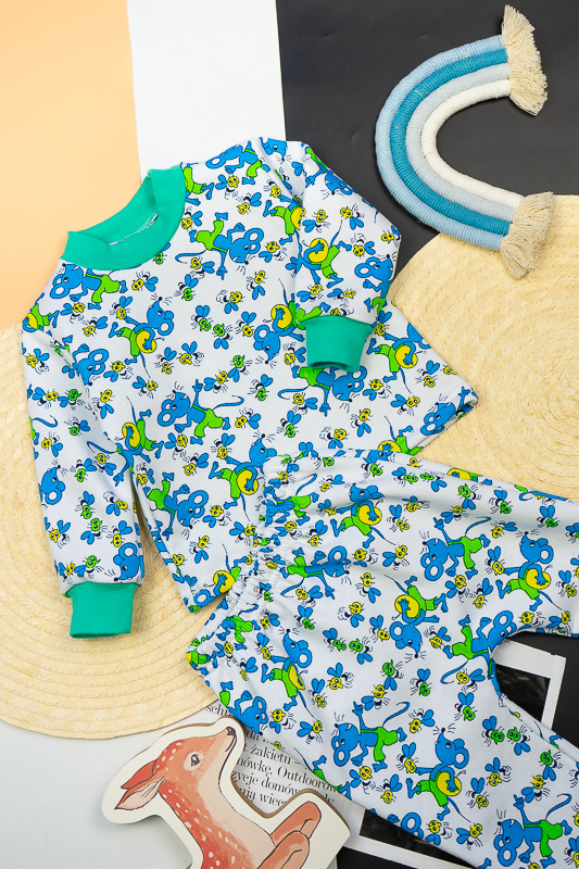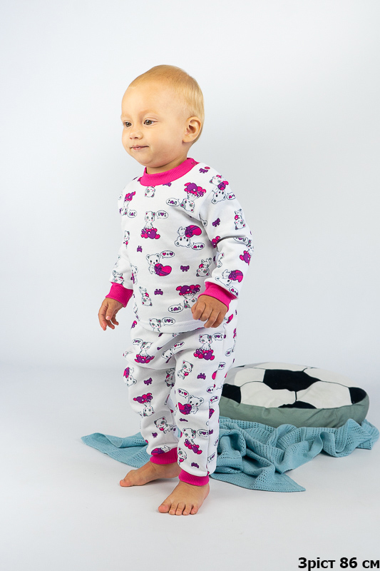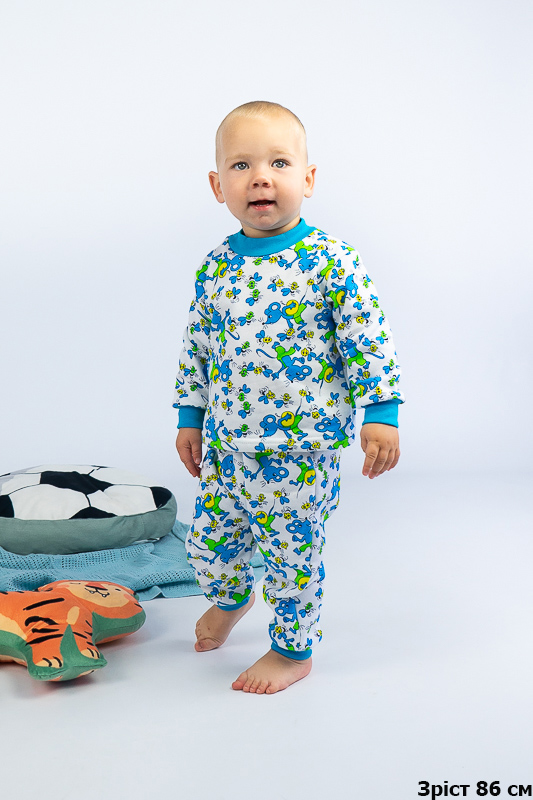 Затишна піжама від ТМ «Гном» для малюків відмінно підійде і як домашній одяг, і як одяг для сну. Складається костюм з кофтини та штанів. Вільний крій, м’які манжети та зручна застібка на плечі дають змогу почуватися зручно і комфортно. Модель виготовлена з трикотажного полотна - начісний футер. У цього полотна лицьова сторона гладка, а виворітна з м'яким щільним начосом. Начос досить міцний, тому витримає будь-які навантаження, навіть самі інтенсивні рухи не викличуть зламів або складок на речах. Полотно стійке до появи затягувань і ковтунів. Вироби з такого матеріалу зручні та практичні. Однак є деякі негативні моменти - матерія погано реагує на вплив прямих сонячних променів і високих температур при пранні. Тому, щоб виріб не дав усадку, прати його рекомендують при температурі не вище 30-40°C.