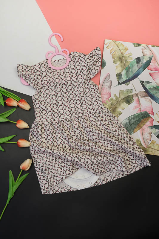 Модний одяг для малечі - це, перш за все, ті речі, в яких ваша дитина буде відчувати себе комфортно. ТМ «Гном» пропонує легку літню сукню-боді для самих маленьких дівчаток. Це відмінний варіант для прогулянок в спекотні дні. Для зручності та комфорту виріб має застібку-кнопки на плечі та між ніжок. Модель виготовлена з тонкого трикотажного полотна - кулір. Це полотно має ряд переваг, а саме: добре вбирає вологу, не сідає, добре тримає форму, гіпоалергенне. Прати рекомендується при температурі не більш 40°C в «Делікатному» або «Ручному» режимі.