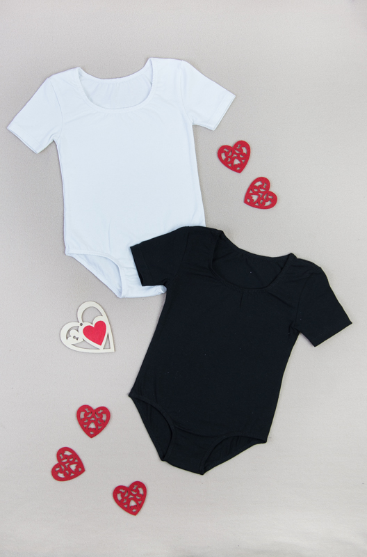 Спортивний тренувальний купальник з коротким рукавом для занять гімнастикою, танцями, хореографією. Виготовлений з стрейч-куліру - еластичного і приємного до тіла полотна, до складу якого входить 95% бавовни і 5% лайкри, що допомогає полотну не витягуватися і зберігати форму після численного прань. Кулір володіє хорошою гігроскопічністю, не викликає алергію, що відмінно підходить для фізичної активності. Виріб невибагливо у догляді, його можна прати при температурі до 40 градусів в делікатному або ручному режимі, не використовувати відбілювачі або порошки з відбілювачами.