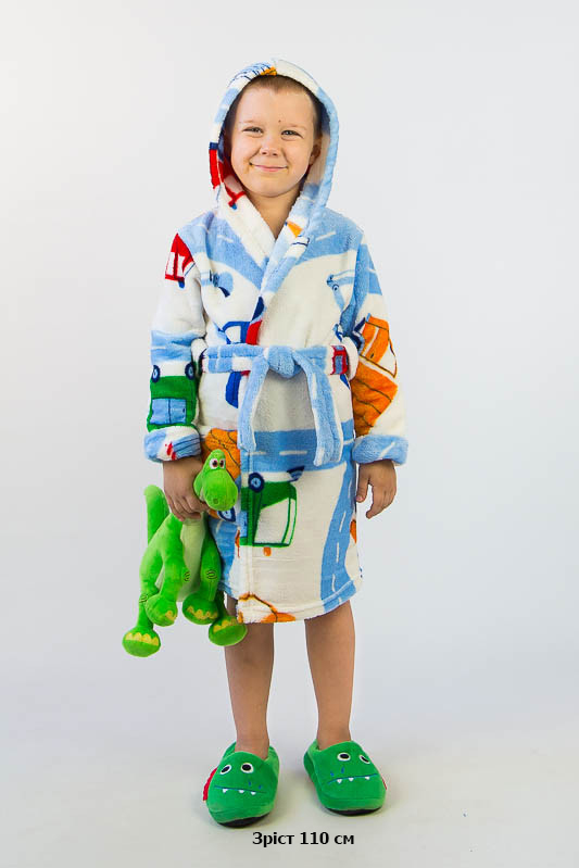 Халат дитячий банний. Модель виконана з полотна велсофт (махра). Матеріал складається з 75% бавовни 25% поліестеру, м'який і міцний з високим ворсом, не линяє не розтягується, не дивлячись на ворсистість не схильний до утворення ковтунів. Дуже затишний і теплий, не подразнює шкіру, гіпоалергенний і повітропроникний, особливо практичний в зимовий період. Купуючи цю модель халата, Ви купуєте затишок і комфорт для ваших діток. Модель розрахована на дітей від 3 до 9 років.