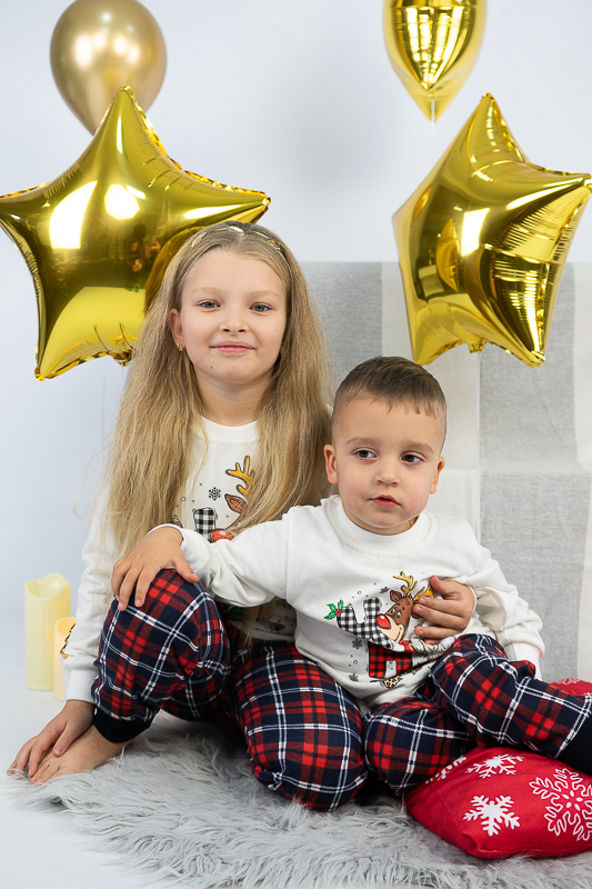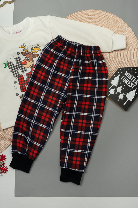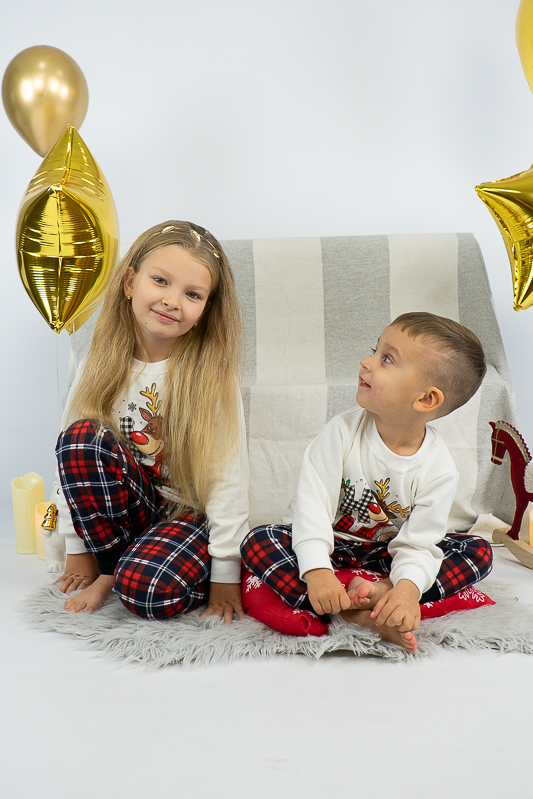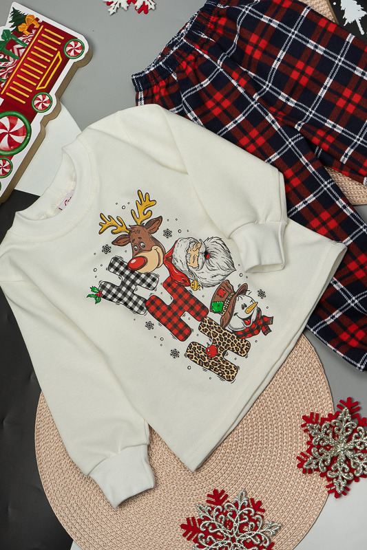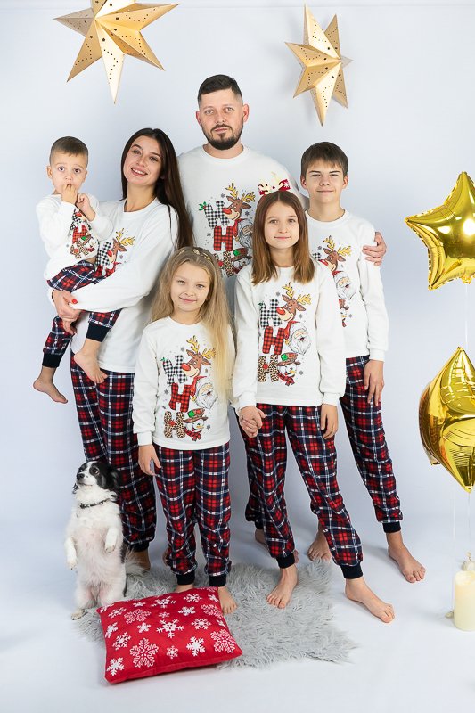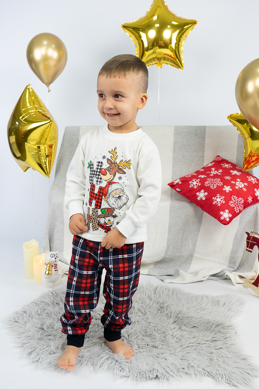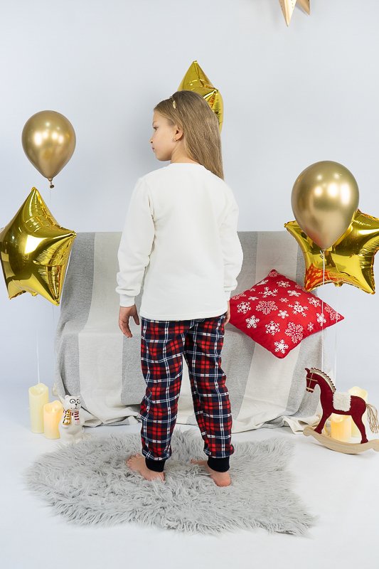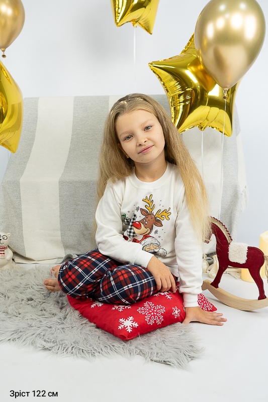 Тепла піжама із колекції "Family look" виготовлена для дітей від 1-го до 7-8 років. Вона м’яка та комфортна, що сприяє повноцінному відпочинку та приємному сну вашої дитини. Вільний крій та обробка зрізів рукавів і ніжок еластичними манжетами забезпечать комфорт та зручність. Поєднання однотонного та принтованого в клітинку трикотажного полотна з додаванням яскравого малюнку створять приємний святковий настрій. Сімейну колекцію доповнять моделі арт. 150-300-1267Ж, 150-300-1267Ч та 300-1267П. Виготовлена піжама із начісного футера – матеріалу теплого та комфортного. Лицьова сторона такого полотна гладка і приємна, а з виворітного боку - теплий і м'який начос. Начос досить міцний, тому витримає будь-які навантаження, навіть найінтенсивніші рухи не викличуть зламів або складок на речах. Полотно стійке до появи затяжок та ковтунів. Вироби з такого матеріалу зручні, практичні та прослужать вам дуже довго. Однак є деякі негативні моменти – матерія погано реагує на вплив прямих сонячних променів та високих температур під час прання. Тому, щоб виріб не дав усадку, прати його рекомендують за температури не вище 30°C. Прасувати треба з лицьової сторони.