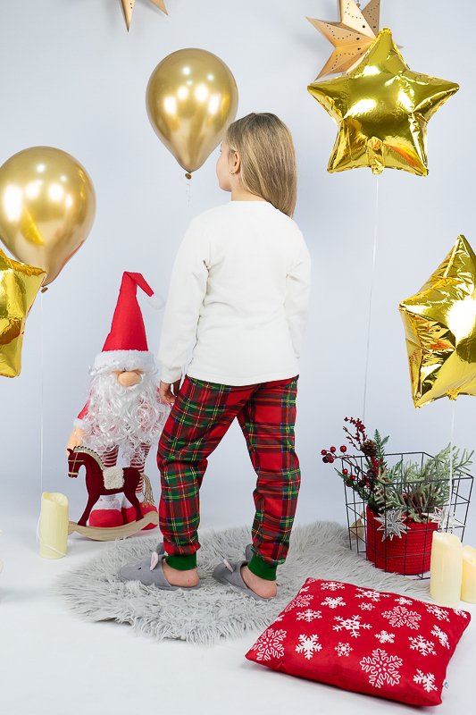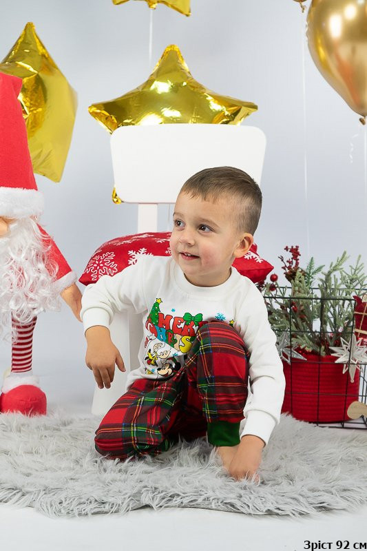 Тепла піжама із колекції "Family look" виготовлена для дітей від 1-го до 7-8 років. Вона м’яка та комфортна, що сприяє повноцінному відпочинку та приємному сну вашої дитини. Вільний крій та обробка зрізів рукавів і ніжок еластичними манжетами забезпечать комфорт та зручність. Поєднання однотонного та принтованого в клітинку трикотажного полотна з додаванням яскравого малюнку створять приємний святковий настрій. Сімейну колекцію доповнять моделі арт. 150-300-1269Ж, 150-300-1269Ч та 300-1269П. Виготовлена піжама із начісного футера – матеріалу теплого та комфортного. Лицьова сторона такого полотна гладка і приємна, а з виворітного боку - теплий і м'який начос. Начос досить міцний, тому витримає будь-які навантаження, навіть найінтенсивніші рухи не викличуть зламів або складок на речах. Полотно стійке до появи затяжок та ковтунів. Вироби з такого матеріалу зручні, практичні та прослужать вам дуже довго. Однак є деякі негативні моменти – матерія погано реагує на вплив прямих сонячних променів та високих температур під час прання. Тому, щоб виріб не дав усадку, прати його рекомендують за температури не вище 30°C. Прасувати треба з лицьової сторони.