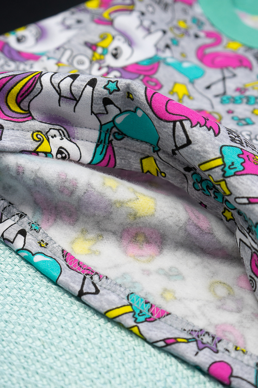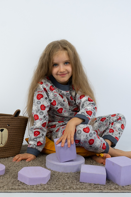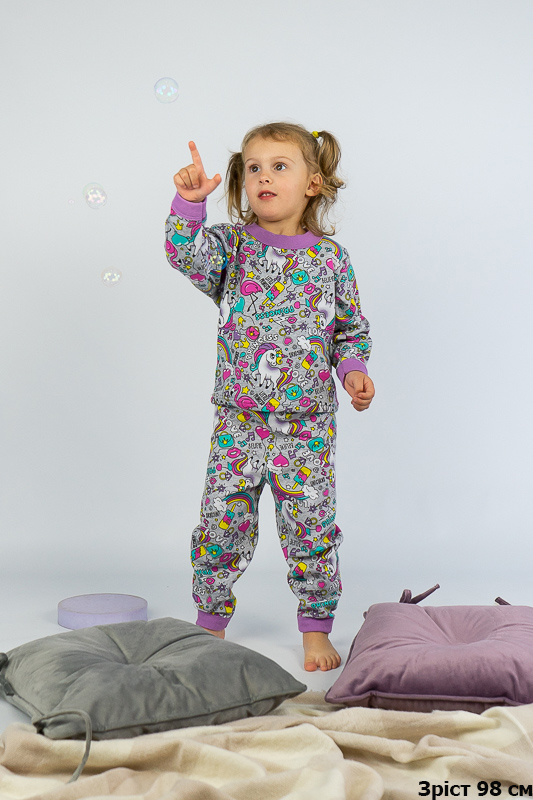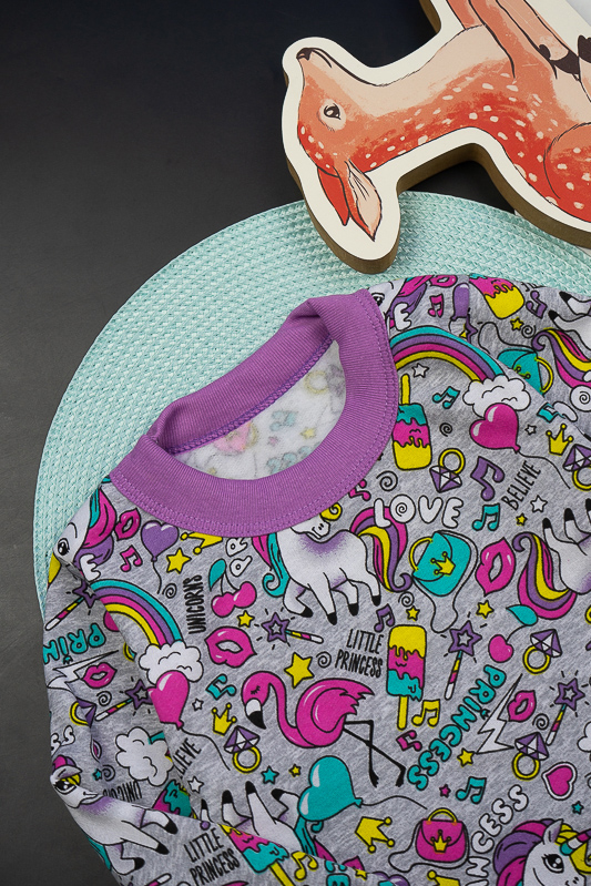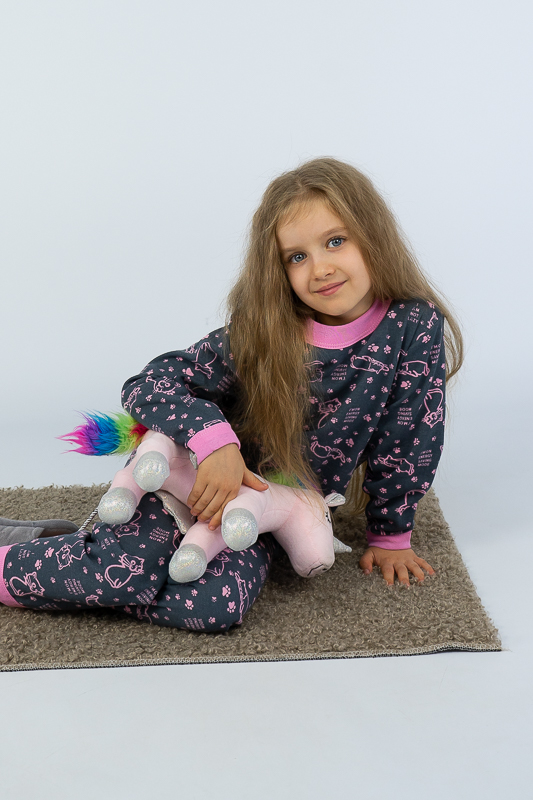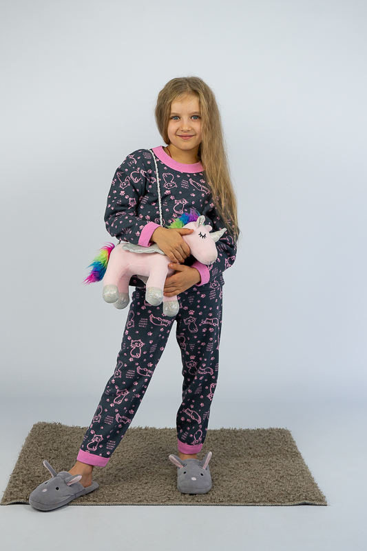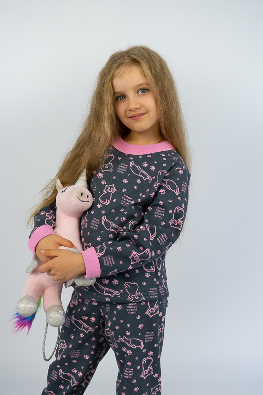Приємна та затишна піжама від ТМ «Гном» виготовлена для дівчаток дошкільного та молодшого шкільного віку. Комфортний легкий матеріал та вільний крій сприяють повноцінному відпочинку та приємному сну. Піжама виготовлена з трикотажного полотна – начісного футера, основою якого є 100% бавовна. Лицьова сторона матеріалу гладка, схожа на кулірне переплетення, виворіт полотна має невеликий м'який ворс. Плюсами футера є висока щільність, гігроскопічність та повітропроникність. Через натуральну основу матеріал можна вважати екологічним та гіпоалергенним. Є деякі негативні моменти – матерія погано реагує на вплив прямих сонячних променів та високих температур під час прання. Тому, щоб виріб не дав усадку, прати його рекомендують за температури не вище 30-40°C.