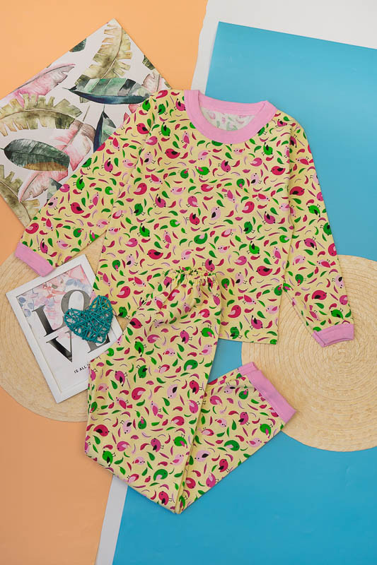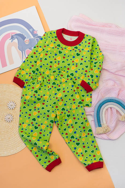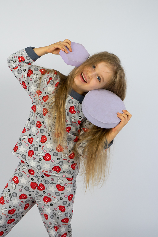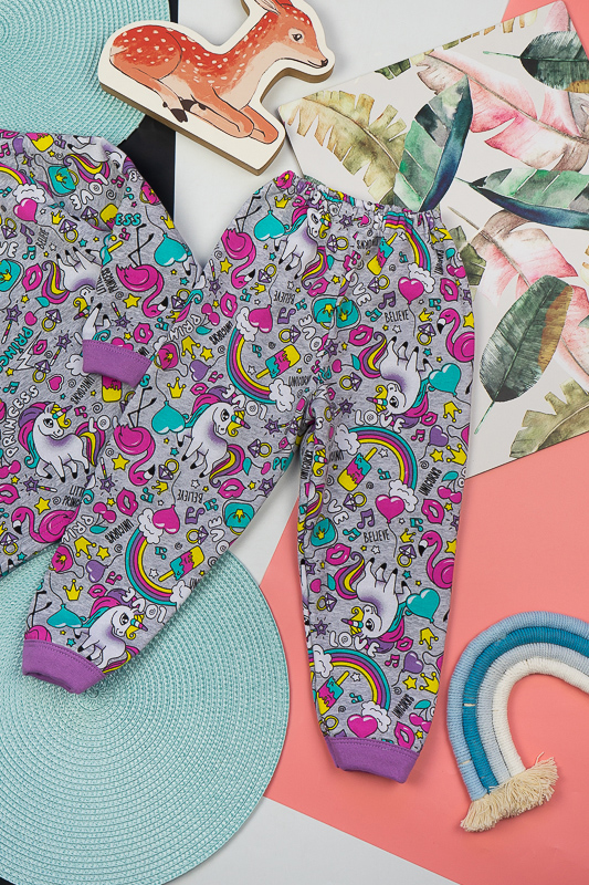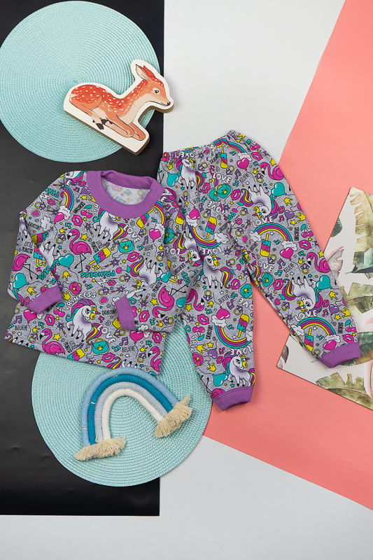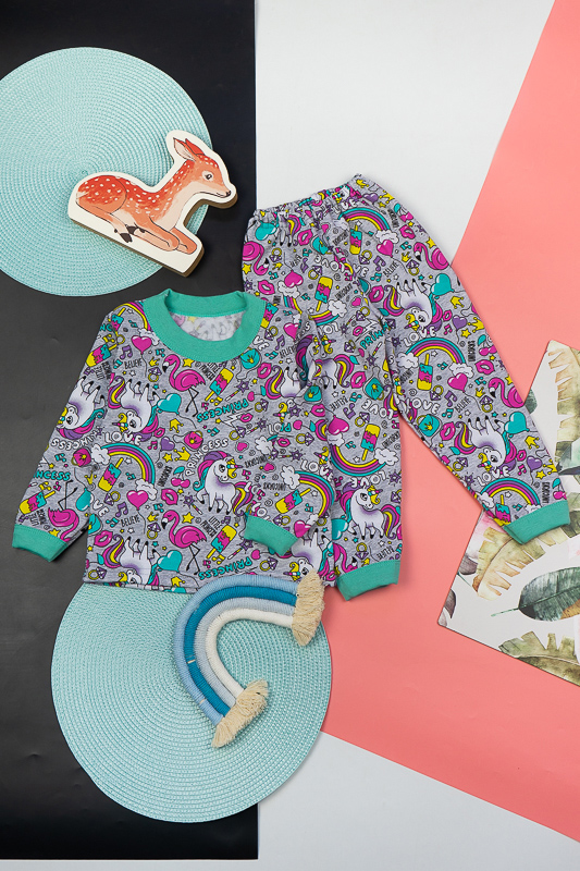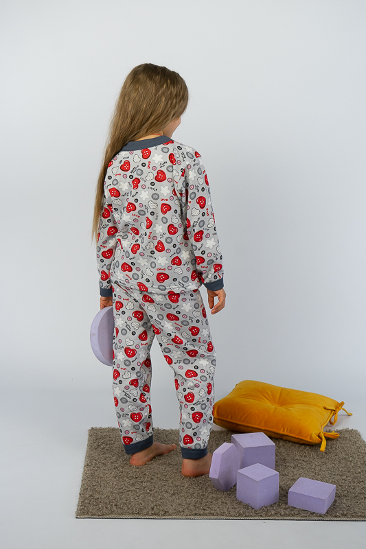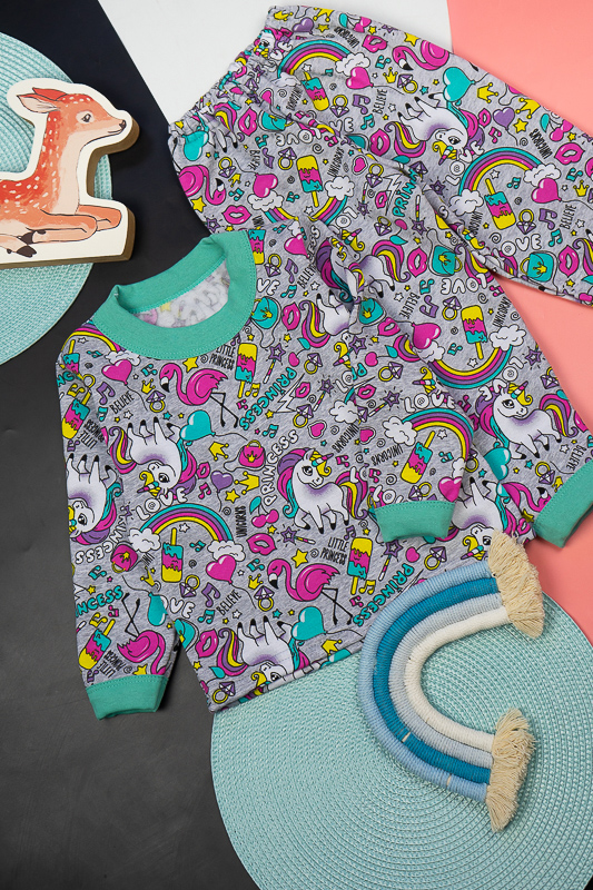 Приємна та затишна піжама від ТМ «Гном» виготовлена для дівчаток дошкільного та молодшого шкільного віку. Комфортний легкий матеріал та вільний крій сприяють повноцінному відпочинку та приємному сну. Піжама виготовлена з трикотажного полотна – начісного футера, основою якого є 100% бавовна. Лицьова сторона матеріалу гладка, схожа на кулірне переплетення, виворіт полотна має невеликий м'який ворс. Плюсами футера є висока щільність, гігроскопічність та повітропроникність. Через натуральну основу матеріал можна вважати екологічним та гіпоалергенним. Є деякі негативні моменти – матерія погано реагує на вплив прямих сонячних променів та високих температур під час прання. Тому, щоб виріб не дав усадку, прати його рекомендують за температури не вище 30-40°C.
