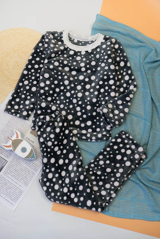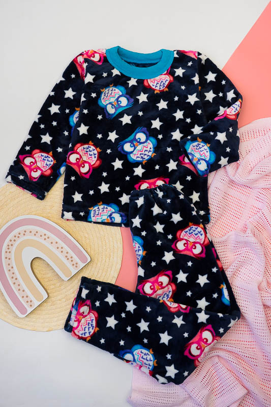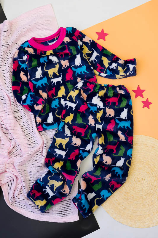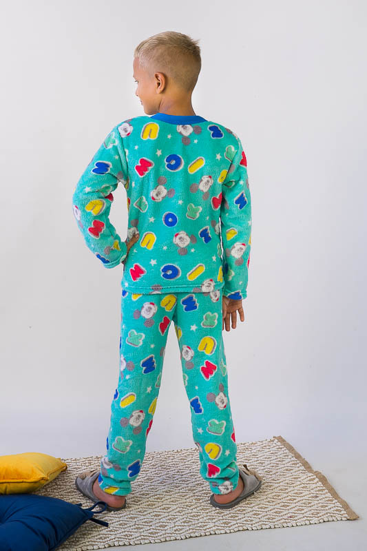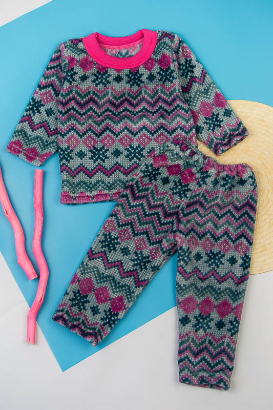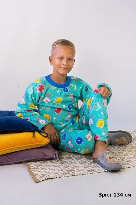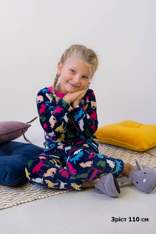 Модель виконана з полотна велсофт (махра). Матеріал складається з 75% бавовни 25% поліестеру, м'який і міцний з довгим ворсом, не линяє не розтягується, не дивлячись на ворсистість не схильний до утворення ковтунів. Дуже затишний і теплий, не подразнює шкіру, гіпоалергенний і повітропроникний, особливо практичний в зимовий період. Горловина кофти оброблено еластичною бейкою, низ рукавів низ кофти і низ штанів оброблені еластичним швом. Покупая цю модель Ви купуєте затишок і комфорт для ваших діток. Піжама розрахована на дітей від 2 до 9 років.