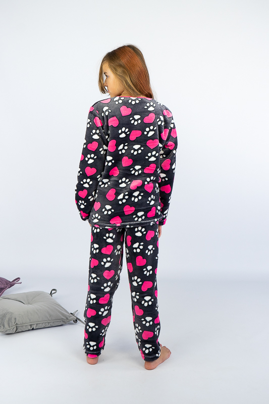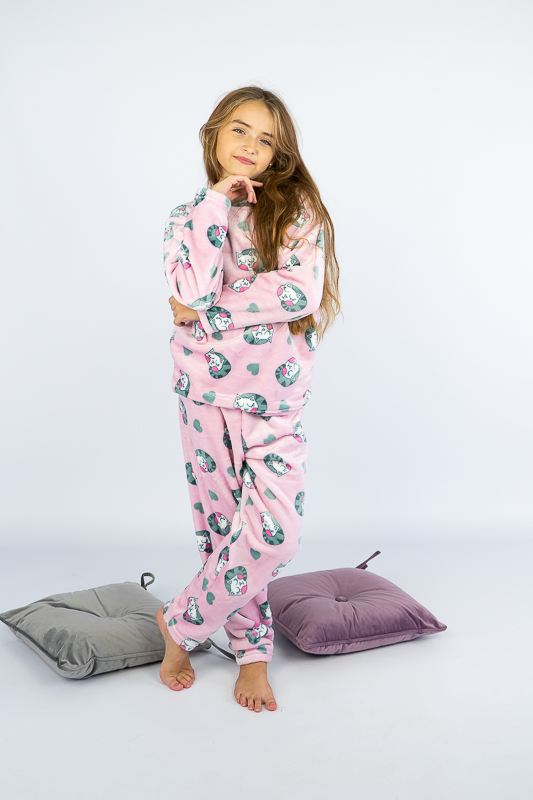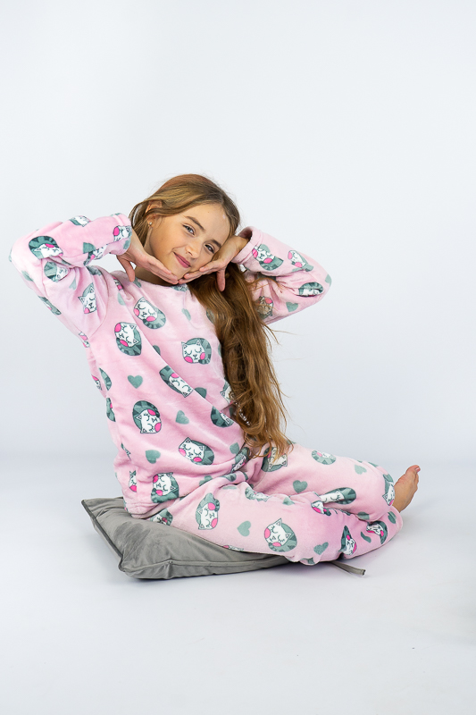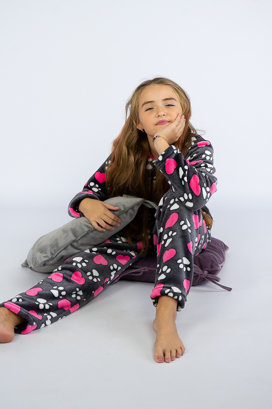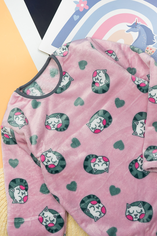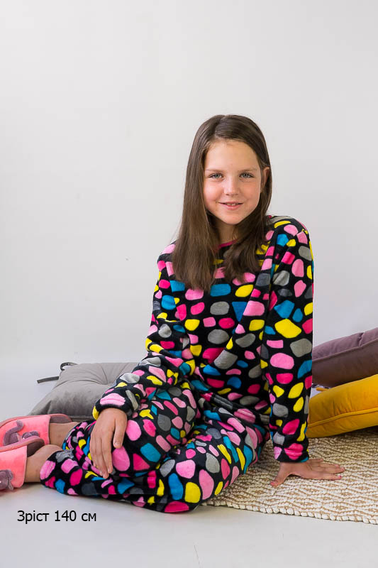 Тепла та затишна піжама для дівчаток – підлітків від ТМ «Гном» приємно порадує своєю м'якістю та невагомістю. Комфортний легкий матеріал та вільний крій сприяють повноцінному відпочинку та приємному сну. Пошито виріб з легкої махри або велсофта. Це трикотаж із густим та м'яким ворсом. Завдяки високій щільності ворсинок речі виходять дуже теплими, причому вироби зберігають свою форму навіть після чисельного прання і на них не утворюються ковтуни. При цьому матеріал дуже легкий, повітропроникний, гіпоалергенний. Вироби з велсофту не вимагають особливого догляду, вони не розтягуються і не сідають під дією високої температури та інших факторів, при пранні не линяє.