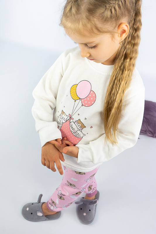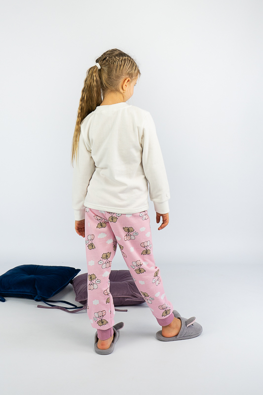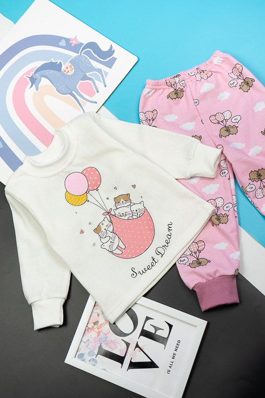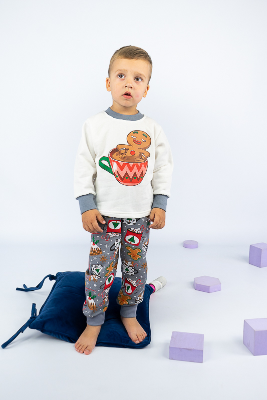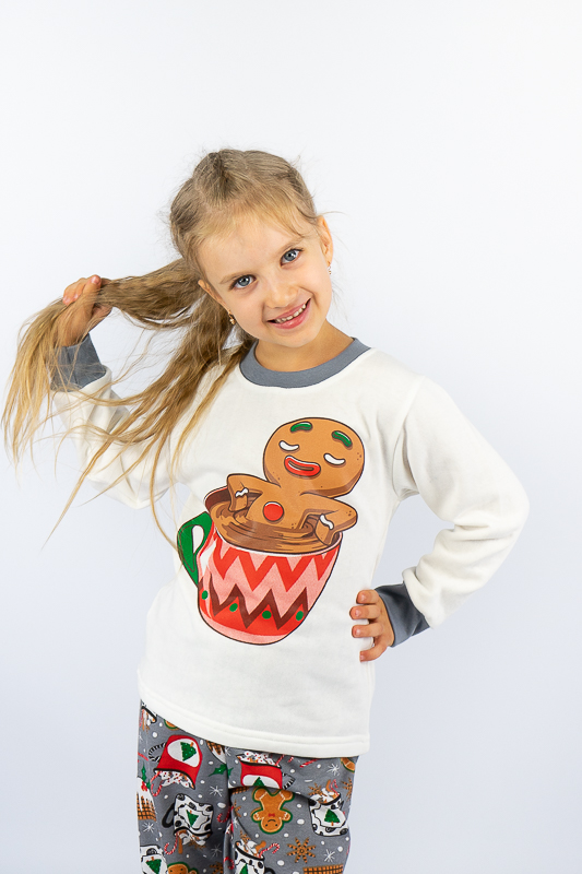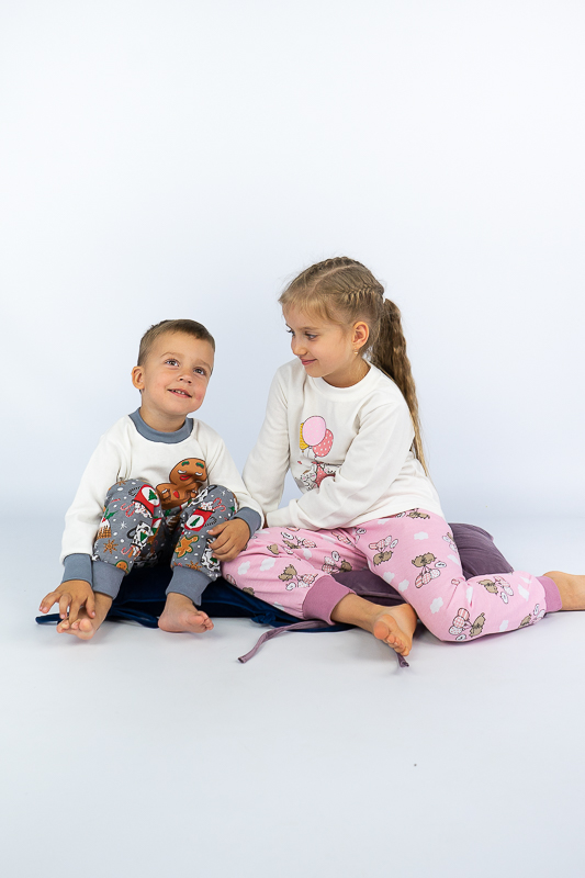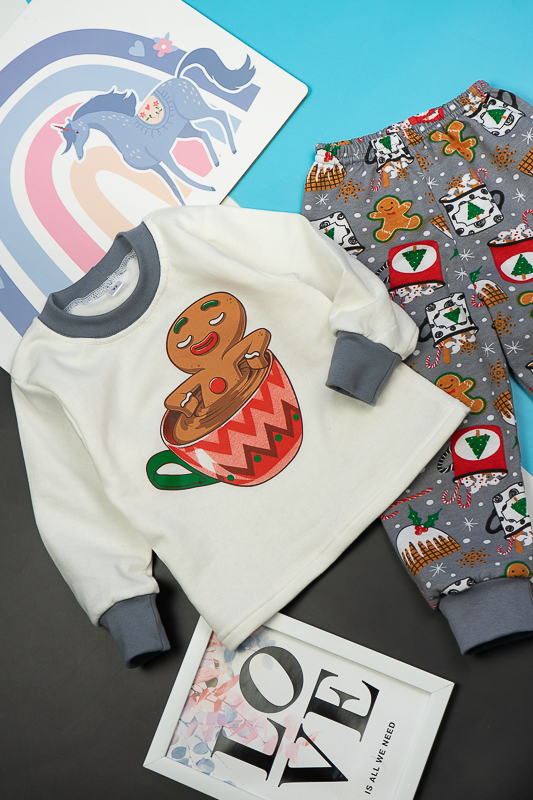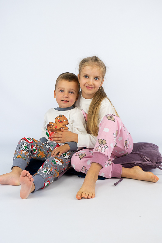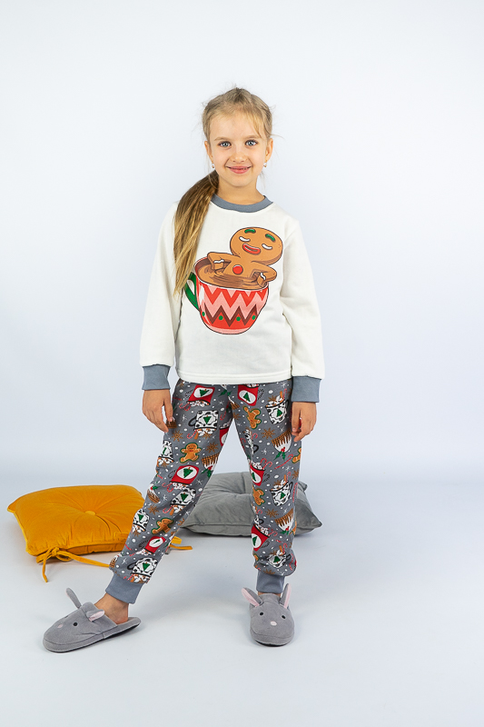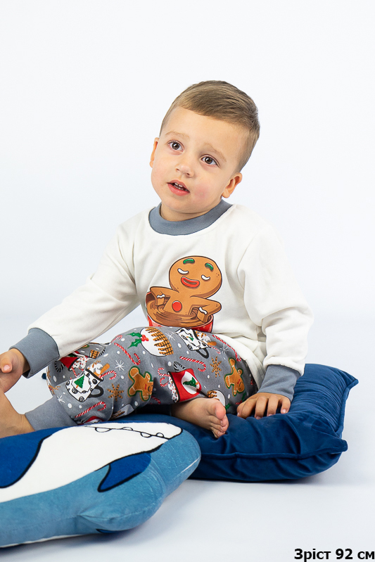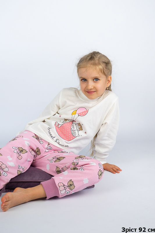 Приємна та затишна піжама від ТМ «Гном» виготовлена для дітей дошкільного та молодшого шкільного віку. Барвистий малюнок оздоблює передню частину кофтинки та відмінно поєднується з принтованими штанами, складаючи загальний образ. Комфортний, легкий матеріал та вільний крій сприяють повноцінному відпочинку та приємному сну. Піжама виготовлена з трикотажного полотна – начісного футера, основою якого є 100% бавовна. Лицьова сторона матеріалу гладка, схожа на кулірне переплетення, виворіт полотна має невеликий м'який ворс. Плюсами футера є висока щільність, гігроскопічність та повітропроникність. Через натуральну основу матеріал можна вважати екологічним та гіпоалергенним. Є деякі негативні моменти – матерія погано реагує на вплив прямих сонячних променів та високих температур під час прання. Тому, щоб виріб не дав усадку, прати його рекомендують за температури не вище 30-40°C.