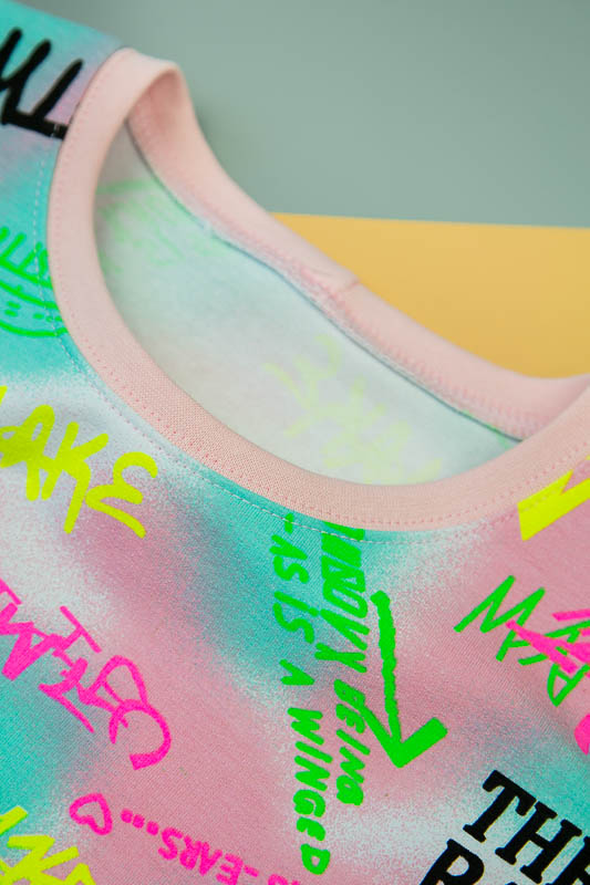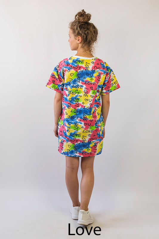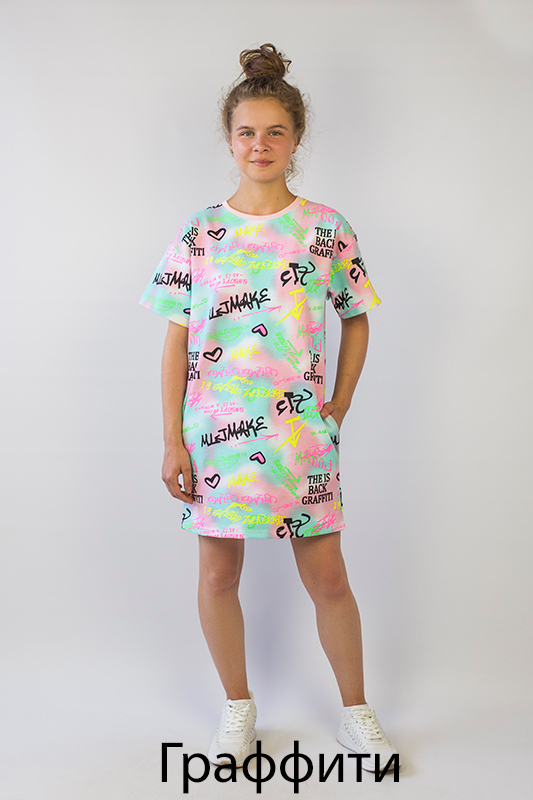Комфортна літня сукня для дівчат підліткового віку від ТМ «Гном» виконана в стилі «oversize», що в перекладі з англійської мови означає «дуже великий» або «вайлуватий». Укорочений і вільний варіант виробу прекрасно підійде для спекотної погоди, а яскраві принти виділять стиль і неоднозначність образу. Доповнити модний тренд можна спортивним взуттям. Сукня виготовлена з щільного і м'якого трикотажного полотна - двунитка, яка так само добре вбирає вологу; ефективно пропускає повітря; має високу теплозберігаючу здатність; не утворює пілей (катишків); не витягується при носінні; проста в догляді. Виріб рекомендується прати при температурі до 40 градусів в делікатному або ручному режимі, не використовувати відбілювачі або порошки з відбілювачами. Прасувати рекомендується з виворітного боку.