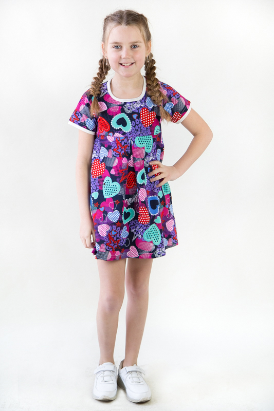 Дитяча сукня "Релакс" пошита з трикотажного полотна - кулір (або кулірка, кулірна гладь). Сукня для дівчаток декорована якісним накатом. Вироби з куліру - це ідеальний варіант для дітей і володарів чутливої шкіри. Характеристики куліру: легкий, тонкий і приємний на дотик; добре вбирає вологу; через особливості плетіння добре тримає форму; тягнеться тільки в ширину; при пранні не дає усадку; простий в догляді, міцний і зносостійкий. Завдяки своїй натуральності кулір - це ідеальне рішення для виготовлення дитячих речей. Рекомендоване прання на делікатних режимах пральної машини при температурі до 40 градусів, а також вручну. Якість фарбування - реактив. Використовується зазвичай для дорогих полотен.
