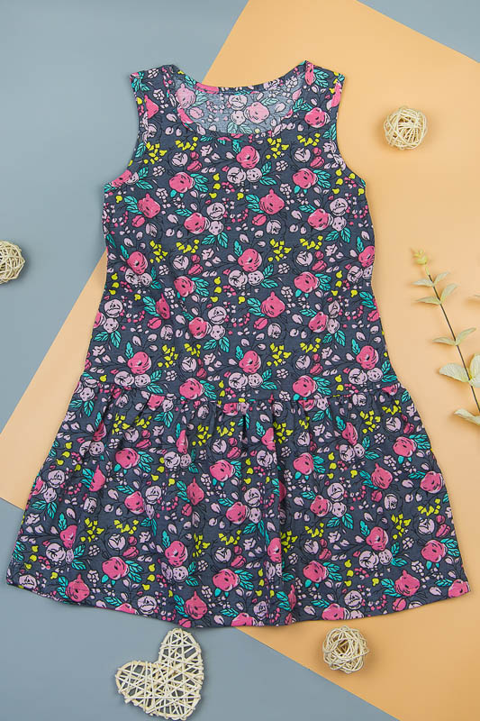 Яскрава зручна літня сукня від ТМ «Гном» підійде дівчаткам дошкільного та молодшого шкільного віку. Простий крій, відсутність застібок в поєднанні з м'яким матеріалом роблять сукню практичною і комфортною в повсякденному носінні. Виріб пошито з гладкого трикотажного полотна - кулір, виробництво якого ведеться з чистої бавовни. Це надає їй характерні для бавовни особливості експлуатації та переваги, а саме: екологічність, гіпоалергенність, мала сминаемість. Особливості догляду за виробом - це: ручне прання або машинне в делікатному режимі при температурі 30-40 градусів; віджимання в пральній машині дозволене на мінімальних обертах; гладити вироби на 1 температурному режимі для збереження кольору.