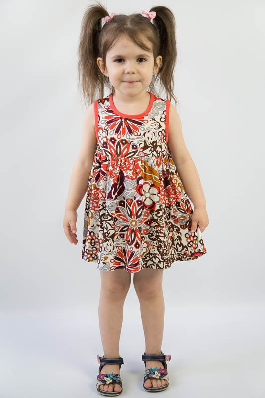 Легке літнє плаття для дівчаток дошкільного віку з яскравим модним принтом обов'язково сподобається і Вам і Вашій принцесі. Це відмінний варіант і для прогулянок і для святкового виходу. Плаття виготовлене з трикотажного віскозного полотна. Завдяки натуральній сировині віскози, виріб має масу переваг: дарує відчуття прохолоди в жарку погоду, добре пропускає повітря і вбирає вологу, не викликає алергію. Рекомендований догляд за виробами з віскози - це ручне прання або ж в пральній машинці в режимі делікатного / ручного прання без віджимання. Температура води не повинна перевищувати 30 ° С. Прасування речей з віскози краще здійснювати з їх виворітного боку.