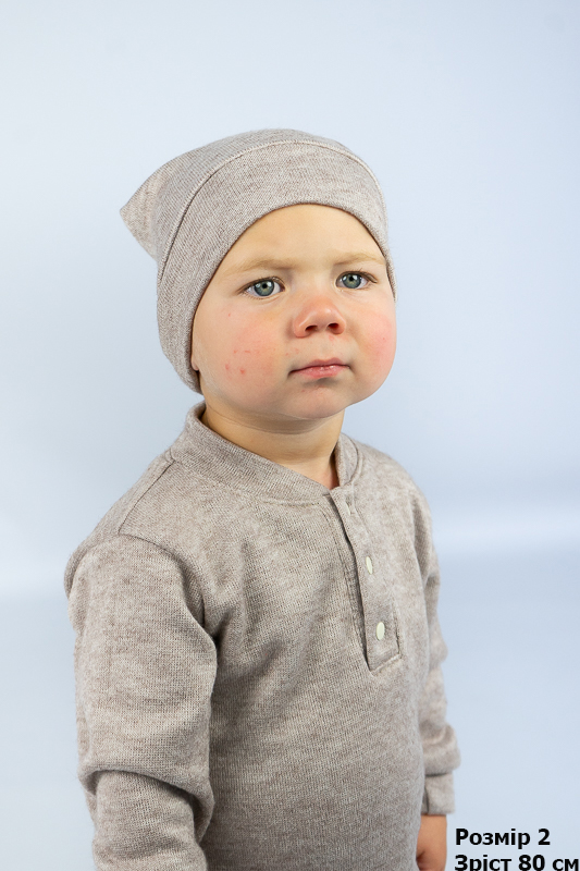 Демісезонна шапка виготовлена для дітей від 6-ти місяців і до 2-х років. Пошита з еластичного трикотажного полотна - ангора. Ангора - це штучне полотно, яке імітує ангорську шерсть. Дане полотно приємне на дотик, має привабливий зовнішній вигляд, має гарну повітропроникність. Переваги ангори - це гіпоалергенні, еластичні, високі теплоізоляційні властивості. Рекомендується делікатне прання в теплій воді.