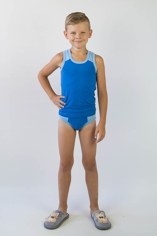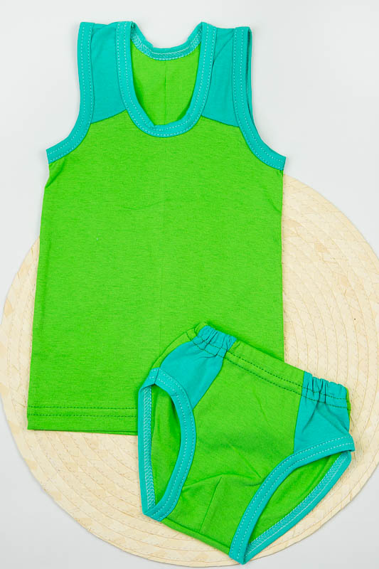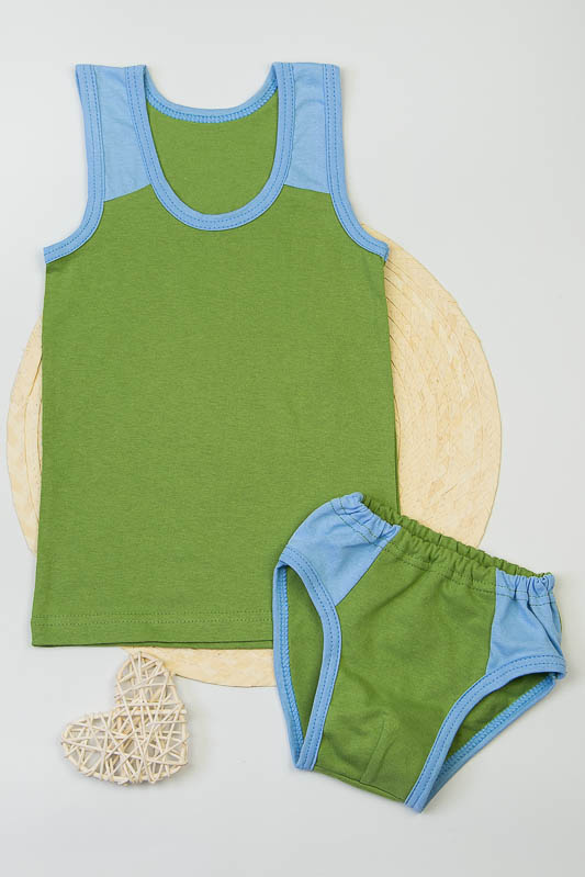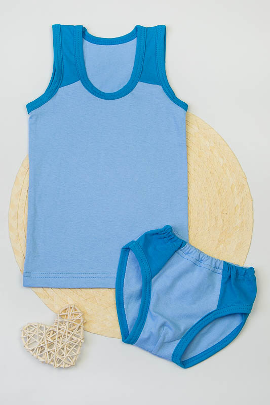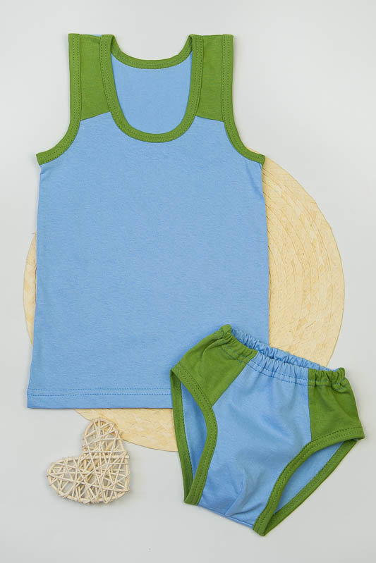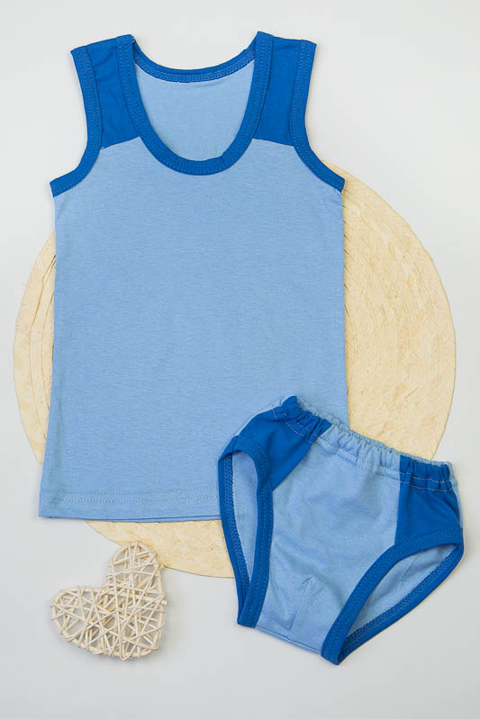 Комбінований комплект нижньої білизни для хлопчиків. Складається з трусів та майки. Пошитий з однотонного куліру