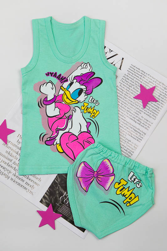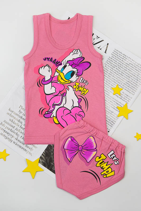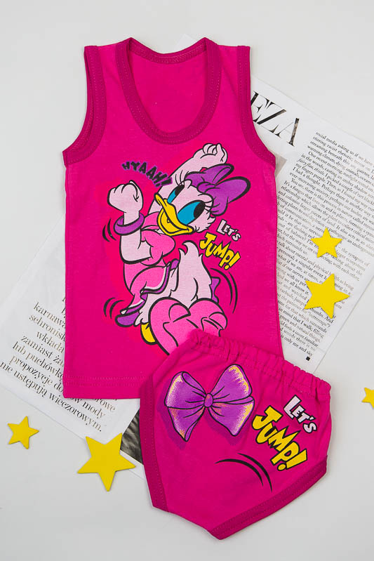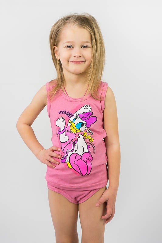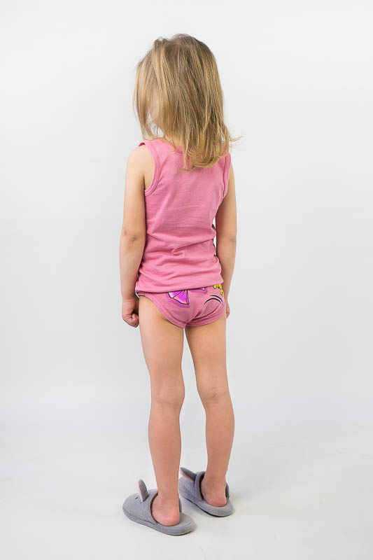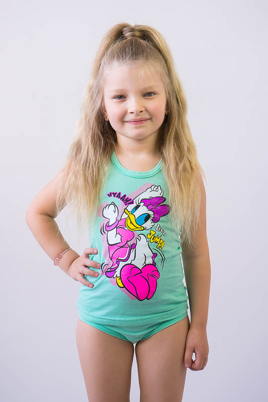 Комплект нижньої білизни для дівчаток. У комплект входять майка й труси з малюнками. Нижня білизна пошито з кулір - тонкого трикотажного полотна ідеально підходить для виробництва даної категорії дитячого одягу. Барвисте зображення по переду майки і ззаду трусиків, нанесене шелкотрафаретом, допоможе вашій дитині раз і назавжди запам'ятати як правильно і швидко одягатися в дитячий садочок.