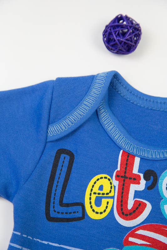 Боді пошиті з трикотажного полотна - інтерлок. Інтерлок - це трикотажне полотно, виготовлене з 100% бавовни, назву матеріал придбав у зв'язку з своєрідним переплетенням волокон. Ця тканина дуже м'яка і ніжна, тому рекомендується для пошиття натільної білизни. Інтерлок дуже приємний до тіла. Крім того, одяг з інтерлоку практично не розтягується і не розпускається, а це сприятливо позначається на терміні його служби. Інтерлок дуже м'який на дотик, теплий і комфортний. Інтерлок - це матеріал, з якого виходять не тільки зручні, але і дуже ефектні і ошатні речі для малюків. В одязі з інтерлоку замерзнути не так-то просто, адже матеріал володіє підвищеною теплоізоляцією, а значить - в будь-яку погоду зберігає тіло дитини в теплі і комфорті. Боді пошиті з однотонного полотна, по переду мають цікавий принт.