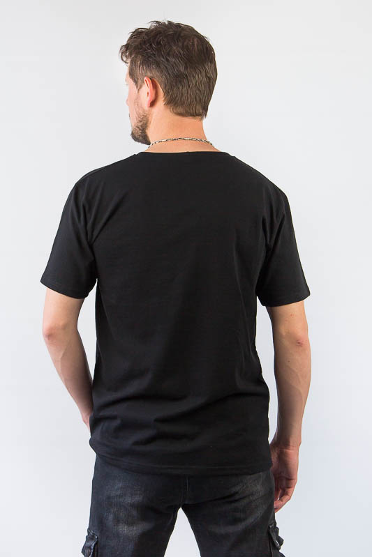 Чорна футболка з патріотичним написом стане приємною обновою для вашого гардеробу. Виготовлено виріб із тонкого трикотажного полотна – кулір, який добре вбирає вологу, не сідає, тримає форму, гіпоалергенно. Виріб рекомендується прати при температурі до 40°С у делікатному або ручному режимі, не використовувати відбілювачі або порошки з відбілювачами. Через наявність малюнка, прасувати рекомендуємо з виворітного боку.