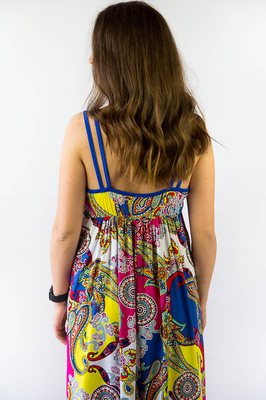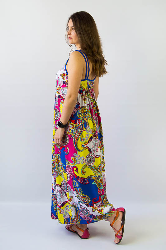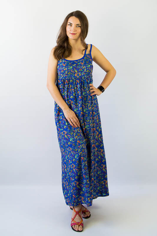 Літо! Нарешті відпустка! Довгий, м'яко струмуючий по фігурі - цей легкий сарафан просто створений для комфортного відпочинку. Модель вільного крою з тканин з барвистими принтами помістяться в будь-який чемодан і перетворять відпочинок на суцільне свято. Сарафан із завищеною лінією талії, на тонких бретелях створить відчуття комфорту і зручності, а також підкреслить витончений стиль його власниці. Виріб пошито з штапеля - тканини, яка представляє собою суміш бавовни та віскози. Сам матеріал досить щільної структури, але це не позначається на його вазі - тканина досить легка і повітряна. Завдяки високому вмісту натуральних волокон, штапель має гарну стійкість до світла, до високих температур, хорошими гігієнічними властивостями, підвищеною теплопровідністю і приємною прохолодою, в ній вам не буде спекотно влітку навіть у найспекотніший день. Прати можна при делікатному режимі або руками, використовуючи теплу воду - не вище 40 градусів.