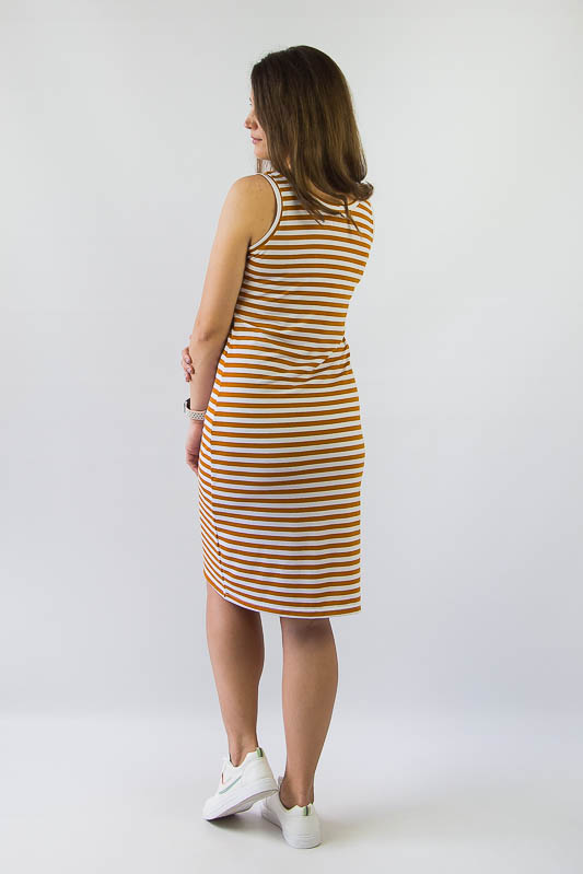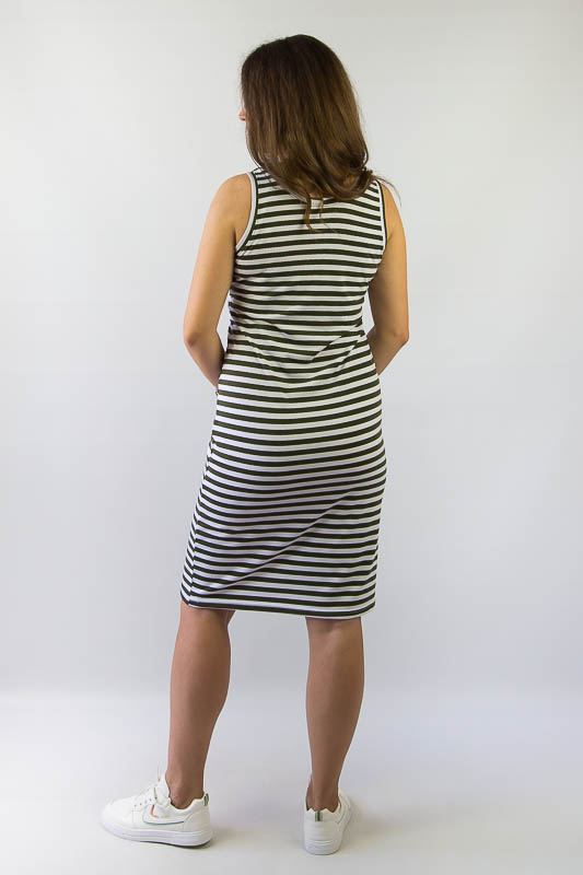 Смугастий принт - це постійний і незмінний тренд літнього сезону. Одяг в смужку часто відрізняється простотою крою і без зайвих деталей. Літня смугаста сукня-майка від ТМ «Гном» ідеально підійде для повсякденного образу. Злегка прилеглий крій плюс м'якість і еластичність матеріалу роблять його зручним і практичним. Модель добре поєднується зі спортивни та напівспортивним взуттям, еспадрильї або босоніжками на плоскій підошві. Сукня виготовлена з легкого віскозного полотно з хорошою розтяжністю. Рослинні волокна в складі віскози зробили її схожою на бавовну. Віскоза також добре вбирає вологу, приємна на дотик, воздухопроникна і не викликає алергію. Рекомендований догляд за виробом - це ручне прання або машинне на малих обертах при температурі не вище 40 градусів, із застосуванням м'якого миючого засобу.