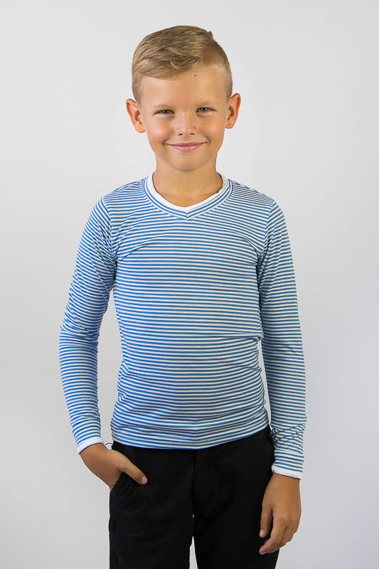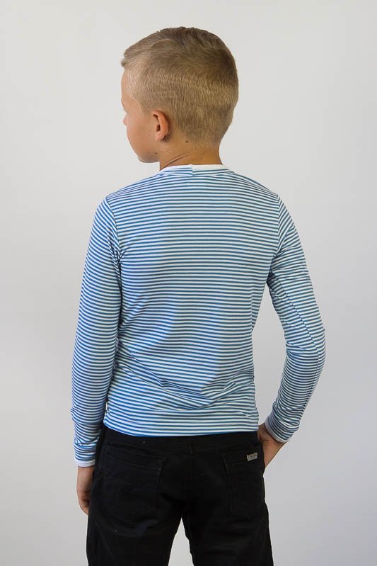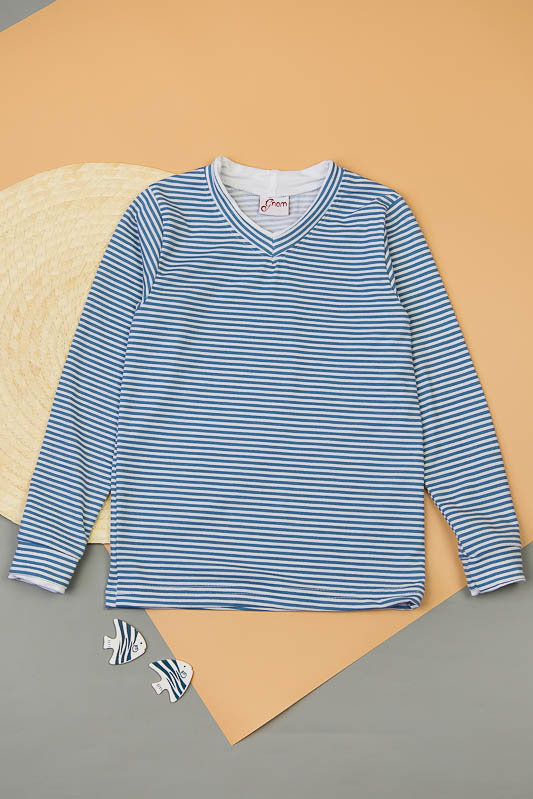 В смугастій футболці з довгим рукавом від ТМ «Гном» буде комфортно і зручно в будь-яку погоду. Це універсальний і ідеальний варіант як для дому, так і для активних прогулянок на свіжому повітрі і уроків фізкультури. Еластичність матеріалу дозволяє комфортно облягати фігуру, при цьому, не обмежуючи рухів. Для пошиття виробу використано легке віскозне полотно з хорошою еластичністю. Рослинні волокна в складі віскози зробили її схожою на бавовну. Віскоза також добре вбирає вологу, приємна на дотик, воздухопроникна і не викликає алергію. Рекомендований догляд за футболкою - це ручне прання або машинне на малих обертах при температурі не вище 40 градусів, із застосуванням м'якого миючого засобу. Прасувати вироби потрібно тільки з вивороту.