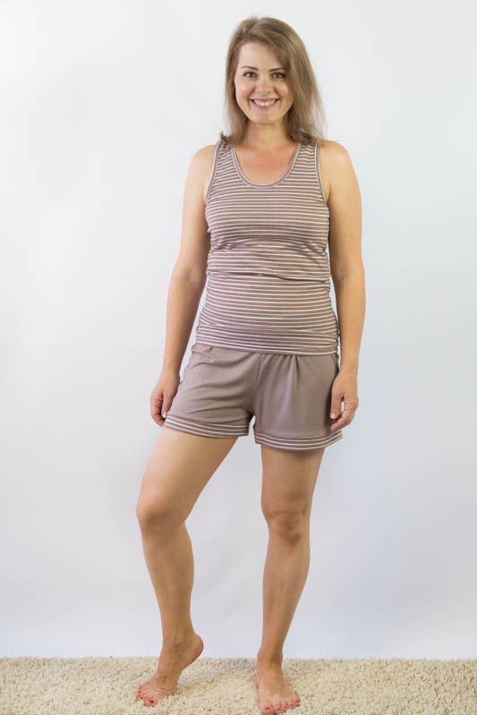 Приємний до тіла комплект прекрасно підійде і для дому, і для сну. У ньому ви будете почувати себе зручно і комфортно. Складається комплект з майки вільних шортиків з оздоблювальними манжетами. Виготовлений виріб з поєднання однотонного і набивного трикотажного віскозного полотна. Завдяки натуральній сировині віскози, виріб має масу переваг: дарує відчуття прохолоди в жарку погоду, добре пропускає повітря і вбирає вологу, не викликає алергію. Рекомендований догляд за виробом - це ручне прання або машинне на малих обертах при температурі не вище 40 градусів із застосуванням м'якого миючого засобу, прасування виконують при невисокій температурі.