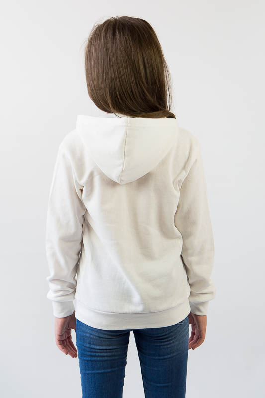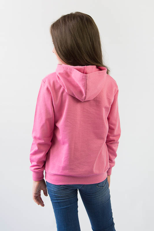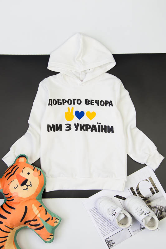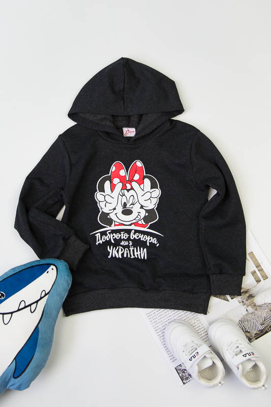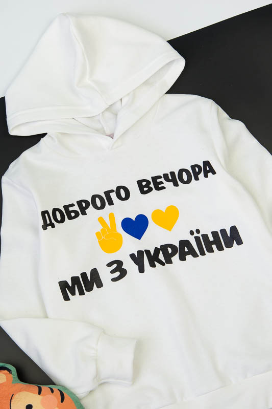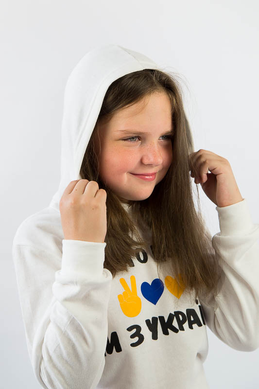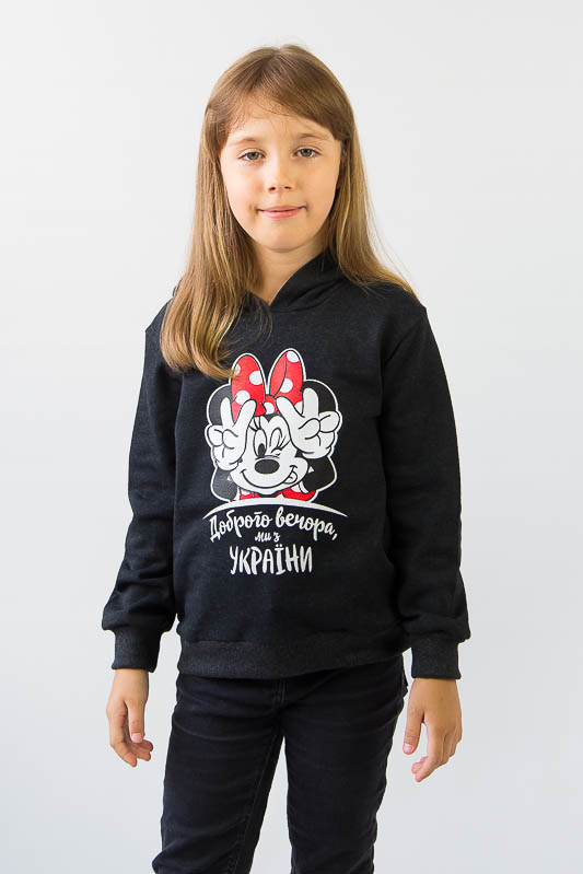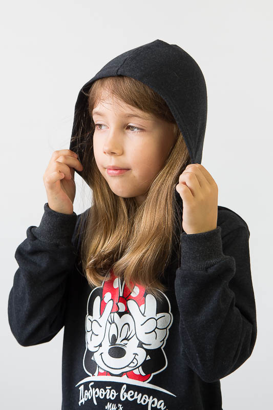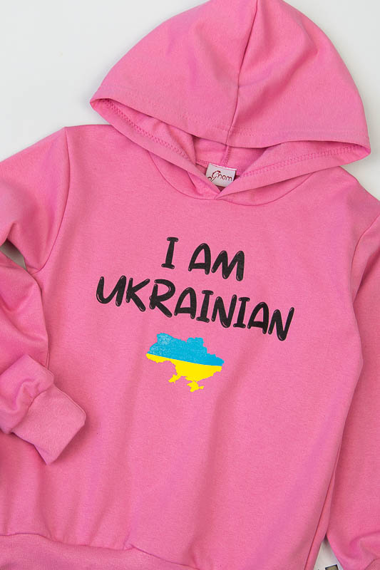 Однотонне худі з капюшоном від ТМ «Гном» виготовлене для дівчаток молодшого віку. Прямі лінії крою, оптимальна довжина до середини лінії стегна ідеально поєднуються з якістю матеріалу та палітрою кольорів. У ньому тепло, затишно та комфортно. Передня частина виробу прикрашена патріотичним малюнком, а зрізи рукавів та низу виробу оброблені еластичним матеріалом у основний тон. Худі виготовлено з трикотажного полотна – начісного футера, основою якого є 100% бавовна. Лицьова сторона матеріалу гладка, схожа на кулірне переплетення, виворіт полотна має невеликий м'який ворс. Плюсами футера є висока щільність, гігроскопічність та повітропроникність. Через натуральну основу матеріал можна вважати екологічним та гіпоалергенним. Є деякі негативні моменти – матерія погано реагує на вплив прямих сонячних променів та високих температур під час прання. Тому, щоб виріб не дав усадку, прати його рекомендують за температури не вище 30-40°С. Через наявність накату прасувати виріб рекомендується з виворітного боку із застосуванням парогенератора.