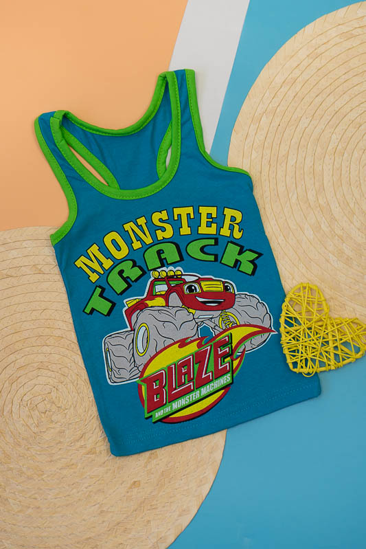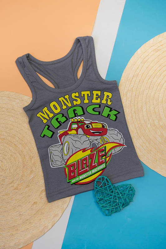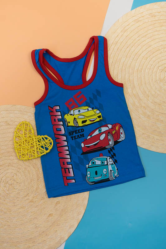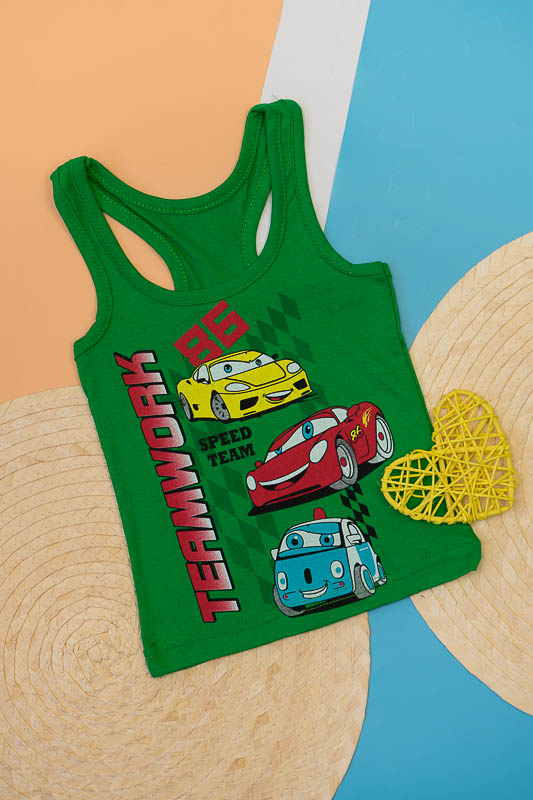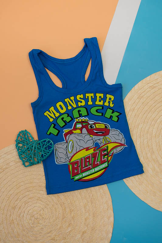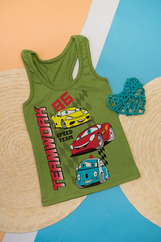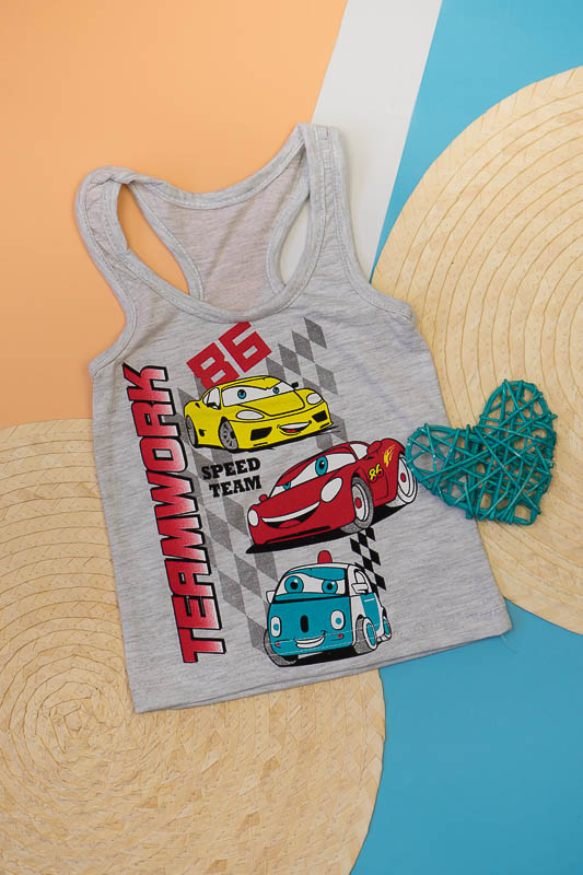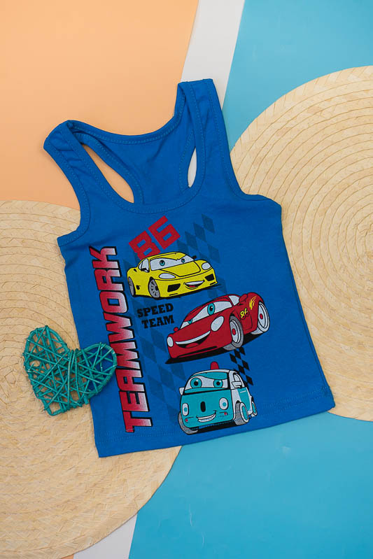Майка для дітей, відома під назвою "борцовка". Під час спекотного літа, борцовка - ідеальний одяг для дітей. Пошита з тонкого і міцного трикотажного полотна - кулір, борцовка не дотримується рухів дитини при активних іграх і дозволяє дітям відчувати себе вільно. Попереду борцовки якісний принт, який не відшаровується. Подібний недорогий дитячий одяг нашого виробництва користується незмінною популярністю серед покупців.