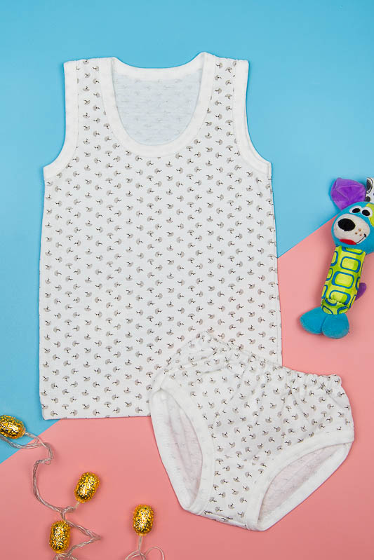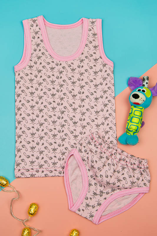 Нижня білизна для дівчаток незамінний елемент дитячого одягу. Виконано з полотна кулір - це 100% бавовна, що дуже важливо для нижньої білизни. Полотно гіпоалергене, повітропроникне і гігроскопічне. Ці властивості роблять вироби з куліру максимально комфортними та зручними для діток. Комплект з куліру подвійного фарбування, це означає що після прання виріб не деформується і не втрачає свій колір. Модель комплекту майка з трусиками буде красивим і зручним елементом білизни для Вашої дівчинки від 1 року до 9 років.