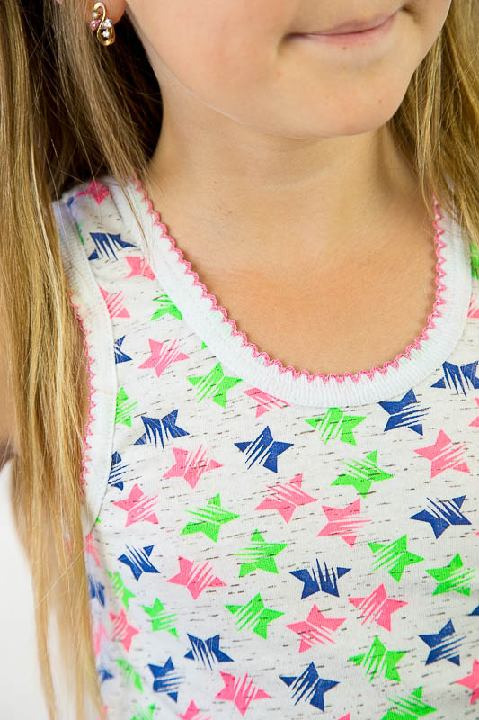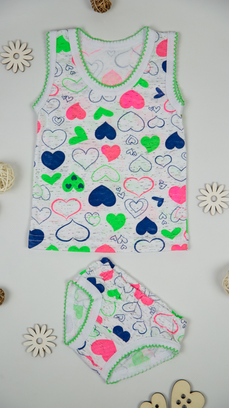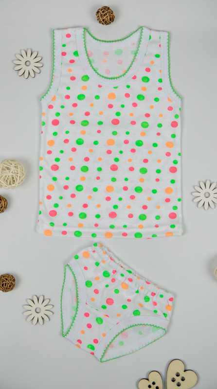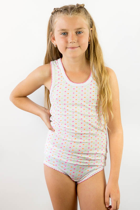 Комплект для дівчаток пошитий з трикотажного полотна - кулір (або кулірка, кулірна гладь). Комплект складається з маєчки і трусиків. Вироби з куліру - це ідеальний варіант для дітей і володарів чутливої шкіри. Характеристики куліру: легкий, тонкий і приємний на дотик; добре вбирає вологу; через особливості плетіння добре тримає форму; тягнеться тільки в ширину; при пранні не дає усадку; простий в догляді, міцний і зносостійкий. Завдяки своїй натуральності кулір - це ідеальне рішення для виготовлення дитячих речей. Рекомендоване прання на делікатних режимах пральної машини при температурі до 40 градусів, а також вручну.