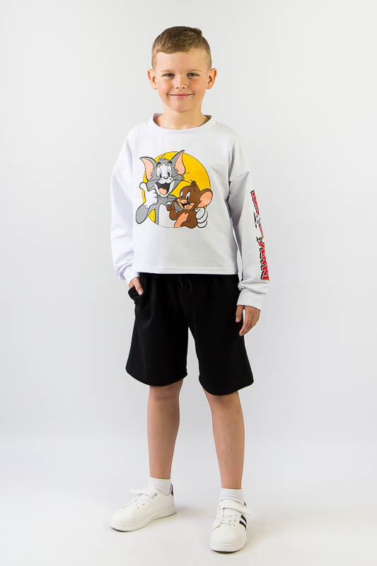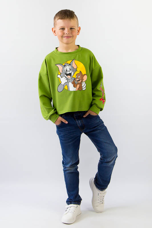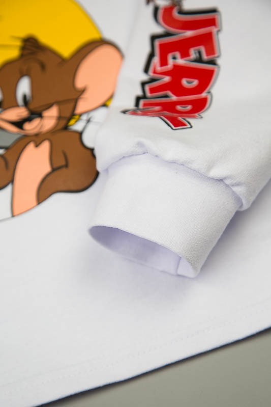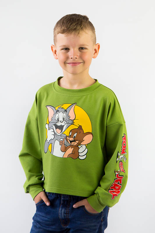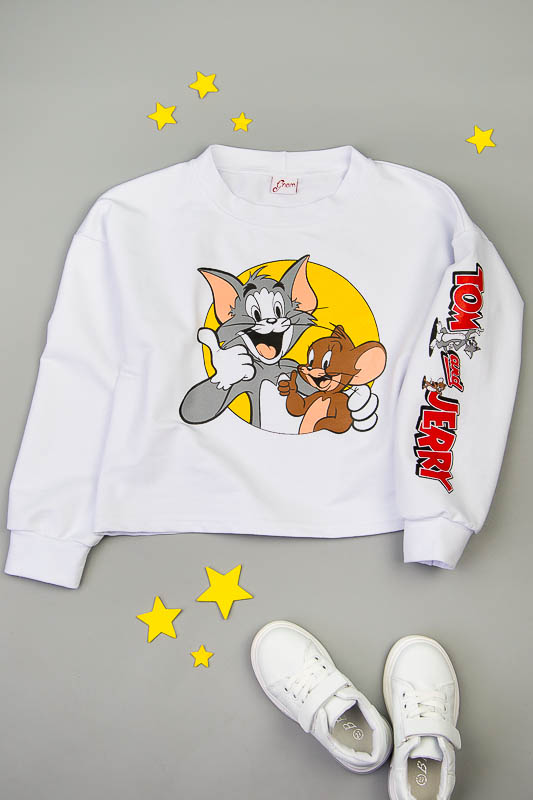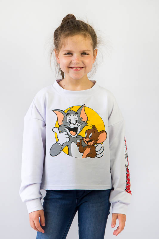 Одяг та аксесуари з героями «Діснея» продовжують завойовувати світ моди. Вже увійшли в історію мультиплікації легендарні Том і Джері і до цього дня не втрачають своєї популярності. ТМ «Гном» пропонує яскраві джемпера з зображенням цих веселих героїв. Джемпера виготовлені для дітвори від 7 до 12 років, а колірна гамма дозволить вибрати виріб на свій смак. Ефектність виробу надає його укорочена довжина. Джемпер зручний, комфортний і добре поєднується як з джинсами, так і з спідницею. Для хлопчиків ми пропонуємо вдале поєднання з подовженими шортами http://gnom.pl.ua/kostymi_detskie/shorty_yubki/10890.html. Джемпер виготовлений з щільного і м'якого трикотажного полотна - двунитка. Ще його називають футер стрейч. Поєднання базових властивостей трикотажу і ефекту від додавання в в'язку футерной нитки повідомляє матеріалу такі властивості: добре вбирає вологу; ефективно пропускає повітря; має високу теплозберігаючу здатність; не утворює пілей (катишків); не витягується при носінні; простий в догляді. Виріб слід прати в теплій воді. Він добре відпирається. Температури води, що дорівнює 30 ° С, буде досить для якісного прання матеріалу. Від прасування краще відмовитися або ж прасувати з застосуванням пара з виворітного боку вивороту.