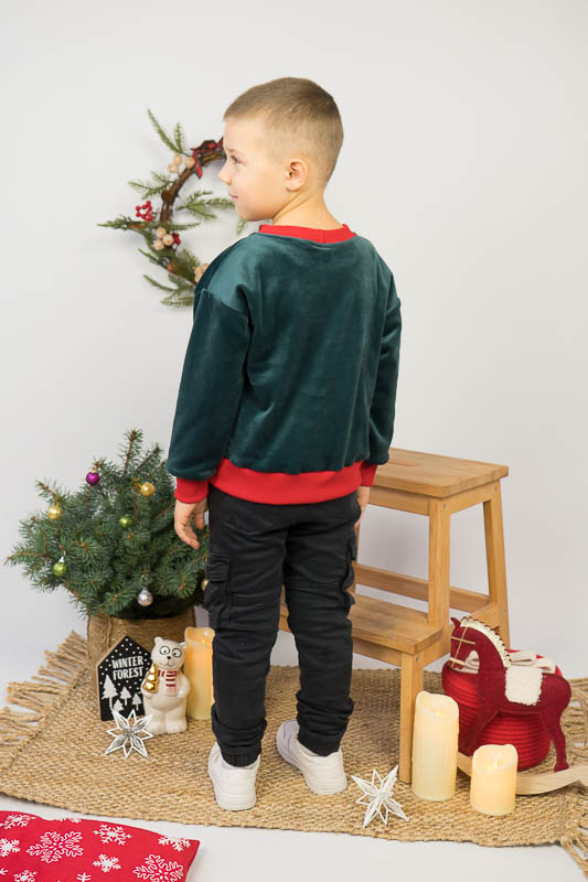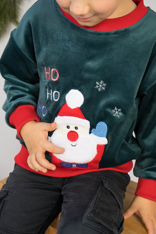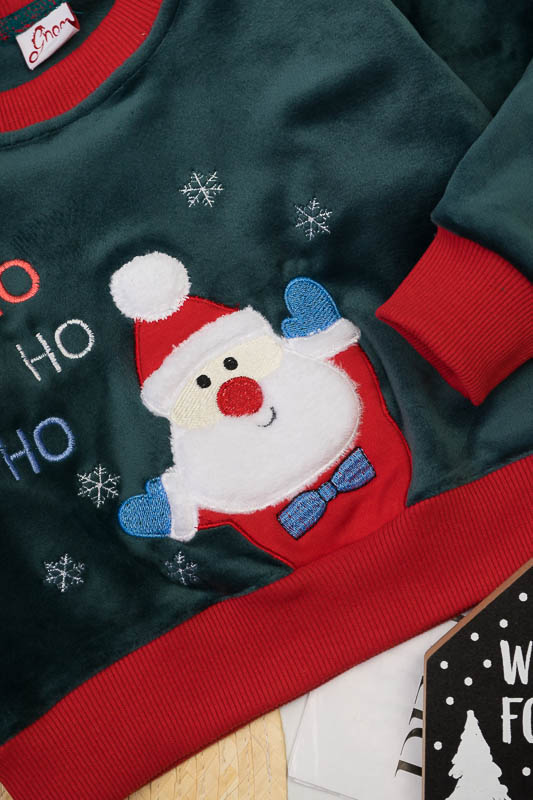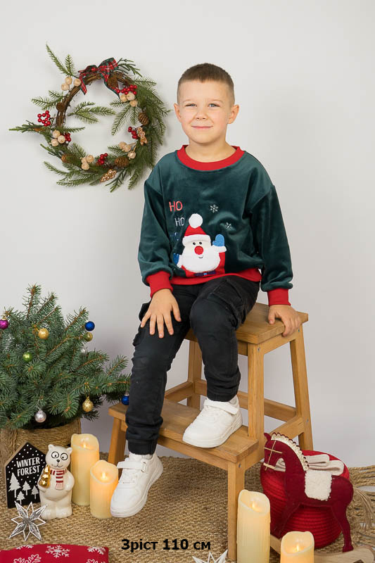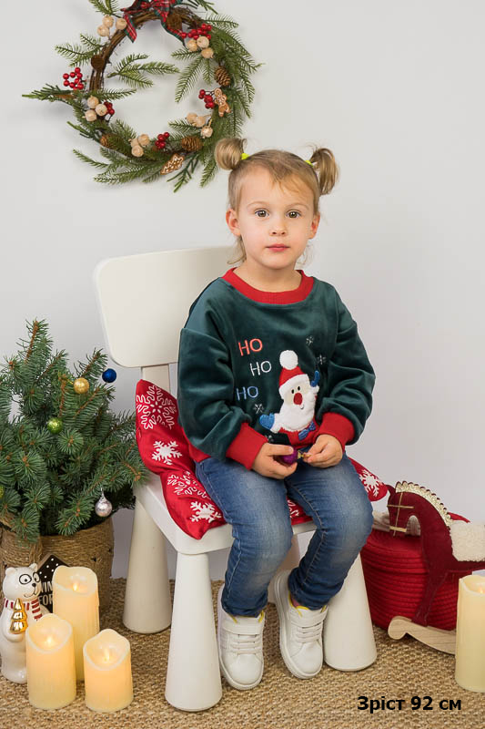 Яскравий різдвяний світшот від ТМ «Гном» ідеально підійде для зустрічі зимових свят. Однотонна модель в стилі «oversize» прикрашена вишивкою "Санти" та оброблена еластичними манжетами оздоблювального кольору. Світшот теплий та комфортний та виготовлений з м’якого і приємного на дотик трикотажного велюру на флісі (93% поліестер, 7% спандекс). З виворітного боку матеріал має коротковорсову поверхню, яка забезпечує додаткове утеплення виробу. Матеріал не мнеться та не потребує складного догляду. Рекомендується делікатне прання в теплій воді.