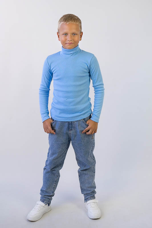 Однотонна водолазка від ТМ «Гном» виготовлена для дітей дошкільного та молодшого шкільного віку. Виріб пошитий з трикотажного полотна – рубчик, через що добре тягнеться та облягає фігуру. Рубчик - це м'який та еластичний матеріал, основою якого є бавовна. Він не линяє і не сідає з часом. Завдяки тим властивостям він дуже комфортний. Доглядати за виробами з рубчика нескладно, їх можна прати при температурі до 40°C при цьому краще використовувати делікатний або ручний режим.