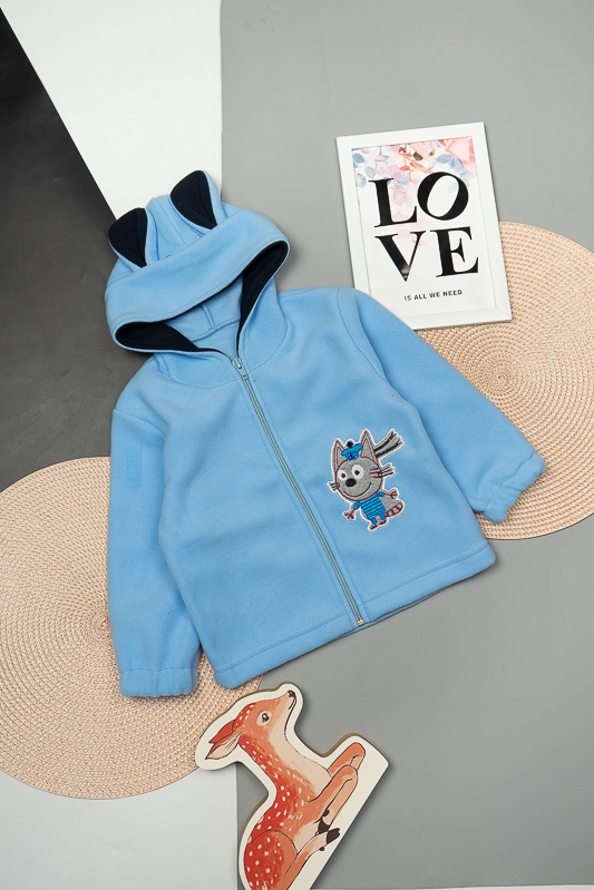 Стильна толстовка - це зручний варіант одягу для дитини, який можна носити в дитячому садку та вдома. Пропонуємо Вам яскраву і комфортну толстовку для хлопчиків та дівчаток. Модель на блискавці, має нашивку попереду, зрізи рукавів оброблені еластичною резинкою та капюшон, який прикрашений милими вушками. Толстовка виготовлена із трикотажного полотна – фліс. Це тепле та м'яке трикотажне полотно. Такий одяг не парить, а дарує тепло та почуття затишку. Рекомендований догляд – це делікатне прання при температурі не більше 30°C, прасування тільки з лицьового боку.