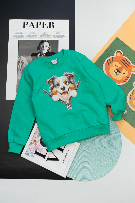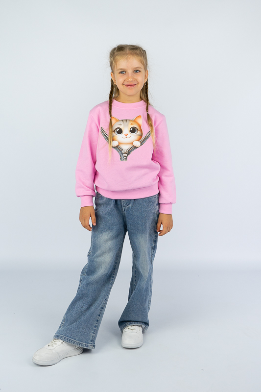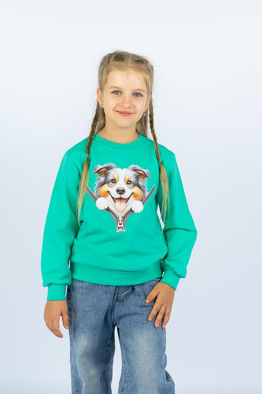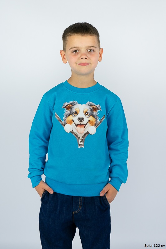 Яскравий однотонний світшот від ТМ «Гном» відмінно підійде дітлахам дошкільного та молодшого шкільного віку. Він зручний та комфортний. Зрізи рукавів, горловини та низу моделі оброблені еластичним матеріалом основного кольору, а передня частина прикрашена малюнком. Світшот виготовлений із трикотажного полотна – начісного футера, основою якого є 100% бавовна. Лицьова сторона матеріалу гладка, схожа на кулірне переплетення, виворіт полотна має невеликий м'який ворс. Плюсами футера є висока щільність, гігроскопічність та повітропроникність. Через натуральну основу матеріал можна вважати екологічним та гіпоалергенним. Є деякі негативні моменти – матерія погано реагує на вплив прямих сонячних променів та високих температур під час прання. Тому, щоб виріб не дав усадку, прати його рекомендують за температури не вище 30-40°C. Через наявність накату прасувати виріб рекомендується з виворітного боку із застосуванням парогенератора.