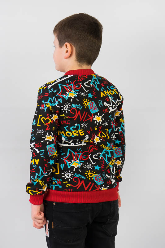 Яскравий світшот з цікавим принтом від ТМ «Гном» відмінно підійде дітлахам дошкільного та шкільного віку. Він зручний та комфортний. Зрізи рукавів, горловини та низу моделі оброблені еластичним матеріалом оздоблювального кольору. Сам виріб пошитий з принтованого трикотажного полотна – двунитка. Трикотаж має позитивні споживчі якості, а саме: добре вбирає вологу, ефективно пропускає повітря, має високу теплоощадну здатність, не утворює пилок (ковтунів), не витягується при носінні, простий у догляді. Рекомендується прати в «Делікатному» або «Ручному» режимі при температурі не вище 40°C, прасувати з виворотної сторони.