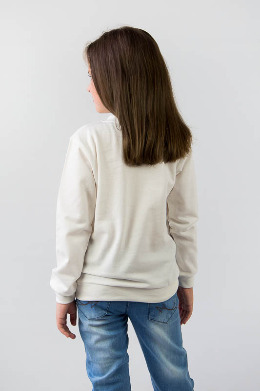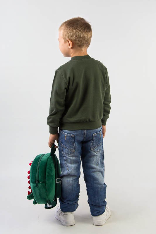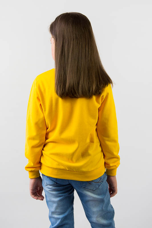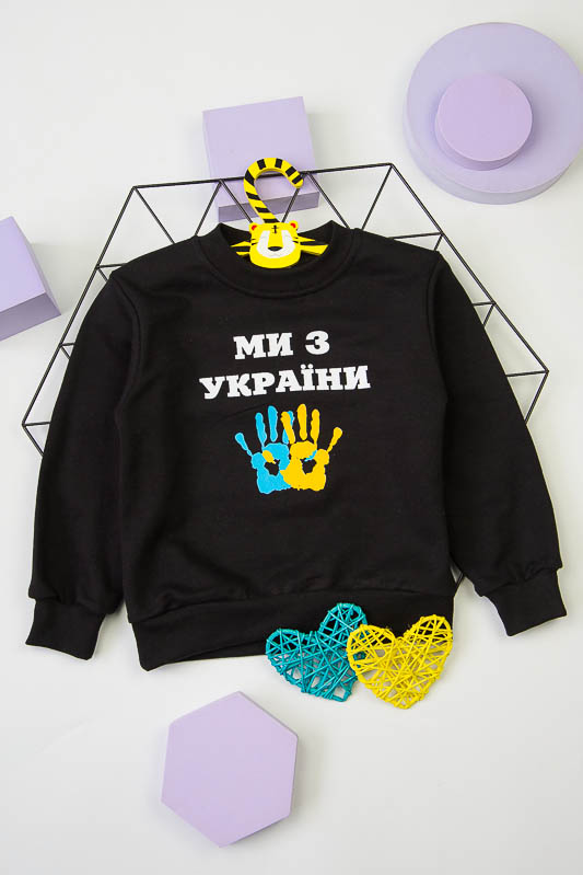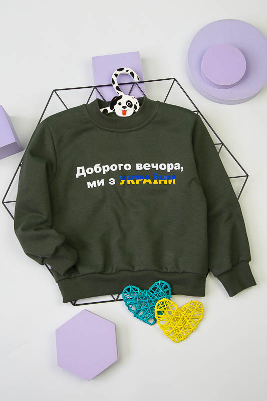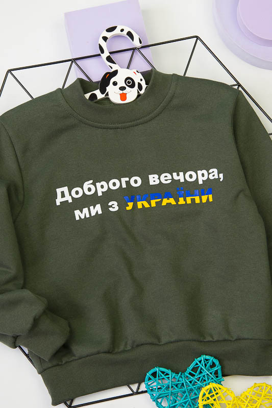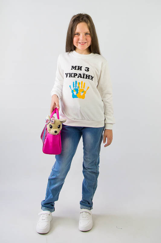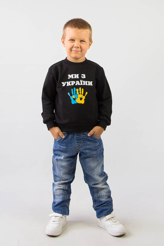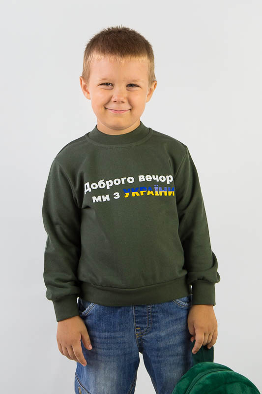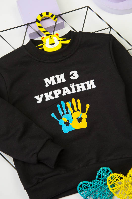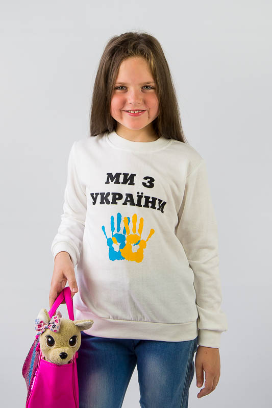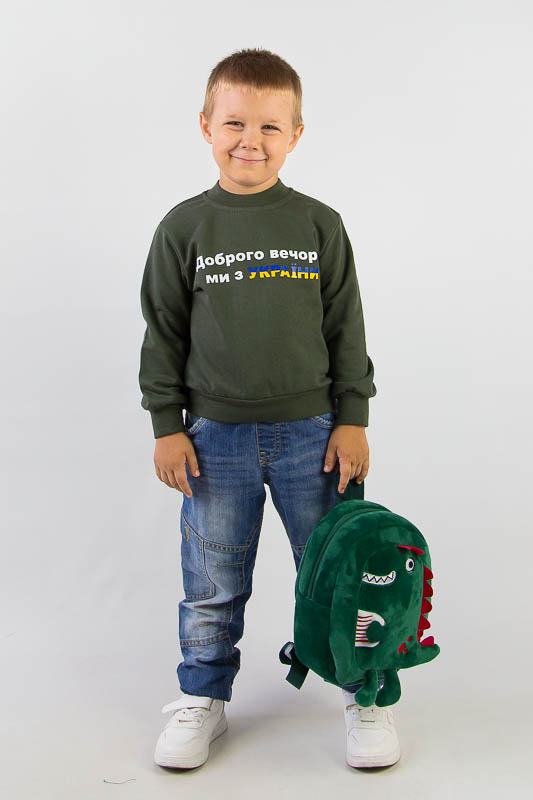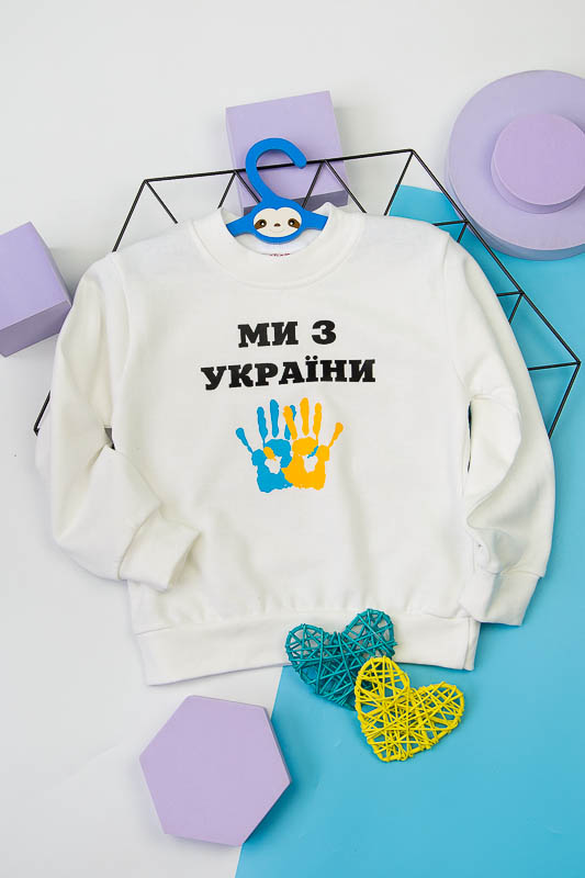 Однотонний світшот від ТМ «Гном» виготовлений для дітлахів молодшого віку. Прямі лінії крою, оптимальна довжина до середини лінії стегна ідеально поєднуються з якістю матеріалу та палітрою кольорів. У ньому тепло, затишно та комфортно. Передня частина виробу оздоблена патріотичним малюнком, а горловина, зрізи рукавів та низ виробу оброблені еластичним матеріалом у основний тон. Світшот виготовлений із трикотажного полотна – начісного футера, основою якого є 100% бавовна. Лицьова сторона матеріалу гладка, схожа на кулірне переплетення, виворіт полотна має невеликий м'який ворс. Плюсами футера є висока щільність, гігроскопічність та повітропроникність. Через натуральну основу матеріал можна вважати екологічним та гіпоалергенним. Є деякі негативні моменти – матерія погано реагує на вплив прямих сонячних променів та високих температур під час прання. Тому, щоб виріб не дав усадку, прати його рекомендують за температури не вище 30-40°С. Через наявність накату прасувати виріб рекомендується з виворітного боку із застосуванням парогенератора.