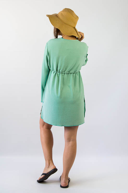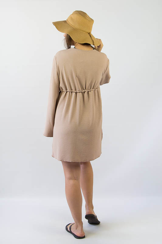 Літо - пора відпусток, в яких обов'язково присутне сонце, море, пляж. Для захисту від активного літнього сонця ТМ «Гном» пропонує легку і вільну жіночу туніку в стилі ампір. Одягнувши поверх купальника, в ній можна сміливо вирушати на прогулянку по узбережжю. Туніка стягується на куліску по завищеній лінії талії, також має високі бічні розрізи. По передній частині горловину благородно прикрашає термонаклейка зі смужок зі стразами. Виріб виготовлено з тонкої та легкої тканини - американський креп. Це тканина- новинка, яка вам обов'язково сподобається завдяки своєму незвичайному зовнішньому вигляду і цікавою фактурою, що дає легкий ефект «жатки». Матеріал практично не світиться і за цим показником вона більше порівняна з тим же штапелем. Має матову поверхню без будь-якого блиску. До переваг тканини відноситься висока міцність і зносостійкість. Тканина здатна пропускати повітря, дозволяючи шкірі дихати. В одязі з американського крепу не жарко, дуже зручно і комфортно. Вона довго носиться, легко переносить прання у пральній машині і швидко сохне, практично не мнеться, тому особливого догляду не потребує. Через наявність термонаклейки прати рекомендується при температурі не більше 30 градусів.