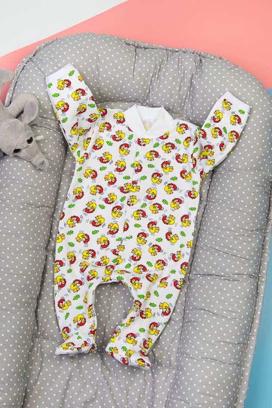 Дитячий комбінезон від ТМ «Гном» ідеальний варіант для сезону осінь-зима. Він зручний, комфортний і універсальний. Прекрасно підійде і як домашній одяг і як одяг для сну. Застібається виріб на кнопки до шва сидіння. Горловина оброблена еластичним матеріалом. Пошитий з трикотажного полотна начіс або футер. Лицьова сторона такого полотна гладка і приємна, а з виворітного боку - теплий і м'який начіс. Футер або начіс - щільне трикотажне полотно, не викликає алергію або подразнення. Підходить для дітей з чутливою шкірою. У цього полотна лицьова сторона гладка, а виворітна з м'яким легким ворсом. Полотно стійке до появи затягувань і ковтунів. Вироби з такого матеріалу зручні, практичні і прослужать Вам дуже довго. Однак є деякі негативні моменти - матерія погано реагує на вплив прямих сонячних променів і високих температур при пранні. Тому, щоб виріб не дав усадку, прати його рекомендують при температурі не вище 30-40 градусів. Гладити потрібно з лицьового боку.