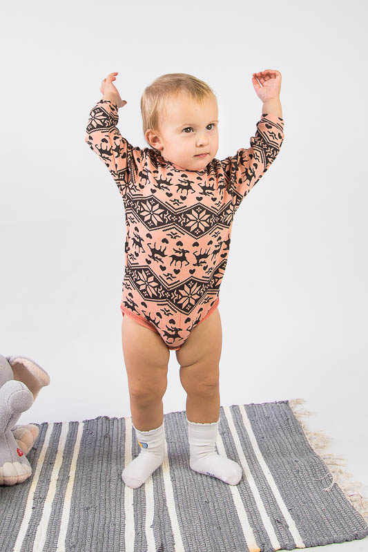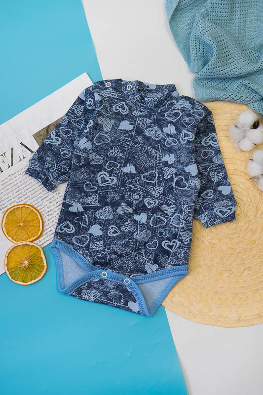 Теплий і еластичний боді з довгим рукавом для самих маленьких буде зручною альтернативою водолазки. Для зручності в надяганні по одному плечу проходить застібка кнопки. Виріб пошито з м'якого трикотажного полотна стрейч-футер. Завдяки футера, зворотний бік має невеликий начіс, а стрейчева основа дає хорошу розтяжність матеріалу. До складу полотна входить 5% еластану, інші 95% становить бавовна. Переваги даного полотна - це екологічність, повітропроникність, вбирає вологу і не викликає алергію на шкірі дитини. Вироби з такого полотна довговічні у використанні, так як легко перенесуть часті прання. Завдяки особливій технології плетіння - на такому полотні не з'являються ковтуни і затягування. Правила догляду за виробами з начісу дуже прості. Не прати при високих температурах і не використовувати відбілювачі. Начіс - натуральне полотно - тому може дати невелику усадку.