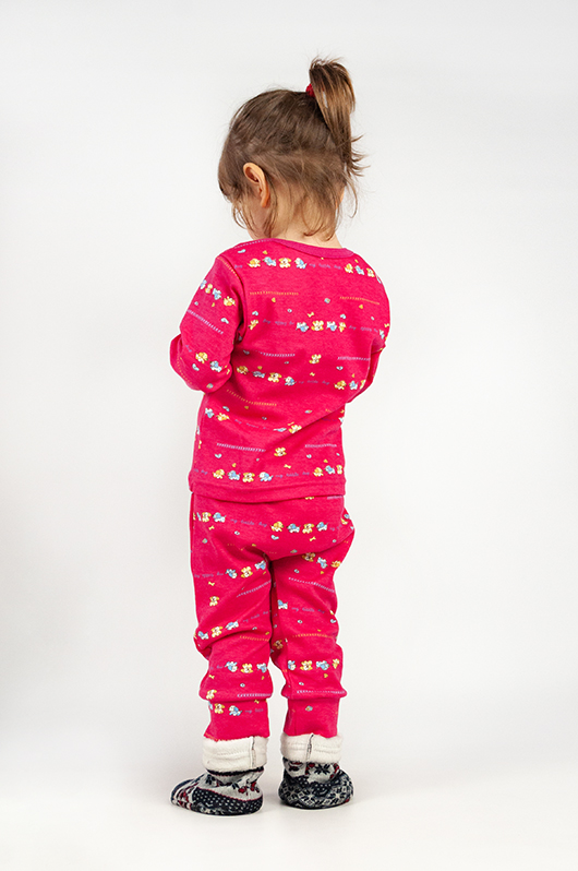Домашній костюм від ТМ «Гном» виготовлений для найменших і відмінно підійде в якості піжами. Вільний крій та м'який матеріал роблять його легким, зручним та комфортним, що важливо для малюків. Для зручності в надяганні плечові зрізи кофточки виготовлені внапусток. Модель виготовлена з м'якого натурального трикотажного полотна – інтерлок. Це матеріал, що на 100% складається з бавовни. Зовнішній вигляд – гладкий та шовковистий з обох боків. Характеристика, властивості: гігроскопічність, гіпоалергенність, хороша теплоізоляція, зносостійкість, міцність. Матеріал тягнеться, але при цьому добре тримає форму, не мнеться. Інтерлок потребує особливого догляду. Підходить прання вручну або в пральній машині на делікатному режимі не вище 40°С, інакше він може сісти. Віджимання мінімальний.