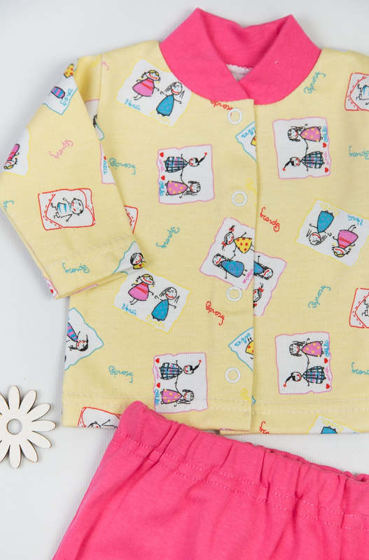 Трьох предметний комплект для самих маленьких. Комплект пошитий з інтерлока двох видів, набивний та однотонний. Цей матеріал складається з 100% бавовни, але він має гладку поверхню з обох сторін. Полотно добре тягнеться, що важливо для фізичної активності, захищає тіло від перегріву і охолодження, 100% натуральний і гігроскопічний матеріал, що так само дуже важливо для самих маленьких діток. Довго тримає свою форму, легко переться і прасується, довго зберігає колір. Прати при температурному режимі не вище 40 градусів. Комплект складається з кофтинки на кнопках, повзунів на широкій резинці і шапочки на стрейчевому прикладі. Такий комплект кращий вибір для малюків від народження до 1 року.