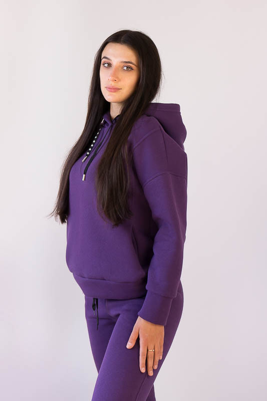 Жіночий теплий костюм від ТМ «Гном» подарує Вам затишок та комфорт у холодну погоду. Об’ємний худі з місткими кишенями та зручним капюшоном відмінно поєднується зі штанами прямого крою на еластичних манжетах. Широкий пояс штанів доповнений шнурком для надійної посадки по фігурі. Наші кольорові костюми приємно порадують своєю зручністю та яскравим зовнішнім виглядом. Модель пошита зі щільної тринитки з начосом. Це тепле та м'яке трикотажне полотно з високим вмістом бавовни. Воно добре вбирає вологу і дає тілу можливість «дихати». Такий одяг не парить, а дарує тепло та відчуття затишку. Рекомендований догляд - це делікатне прання при температурі не більше 35°C, прасування тільки з лицьового боку.