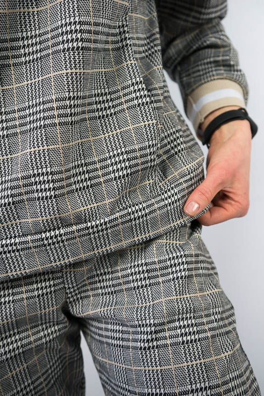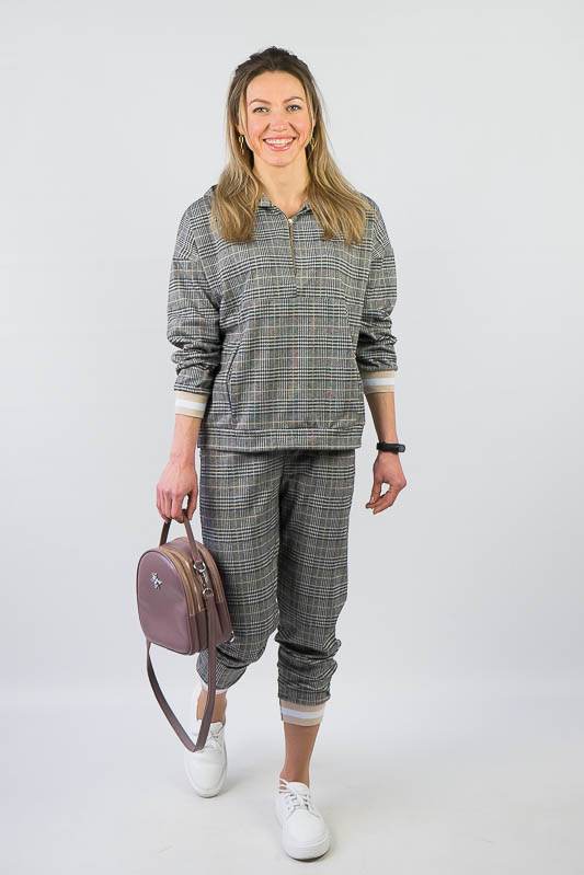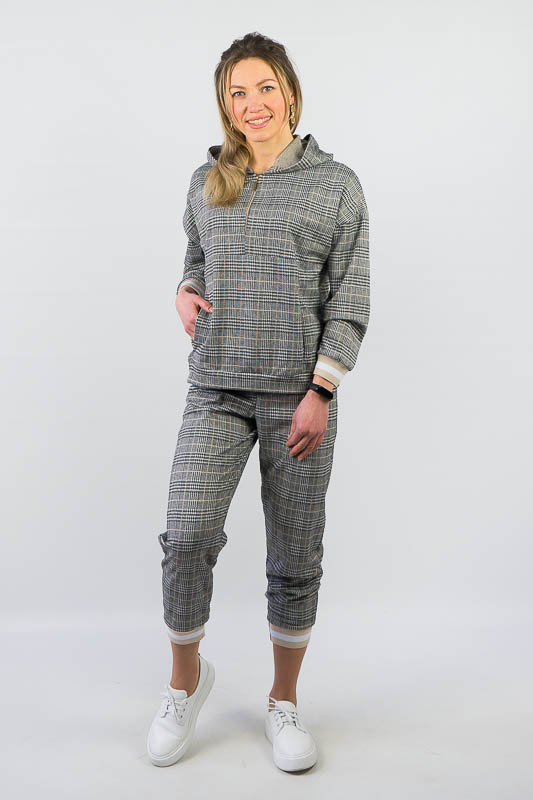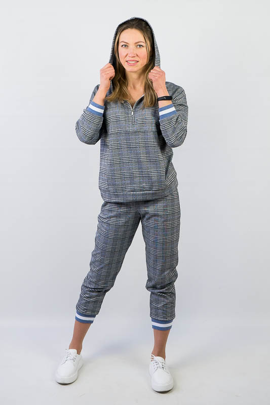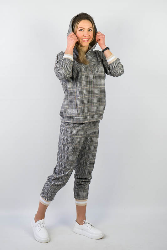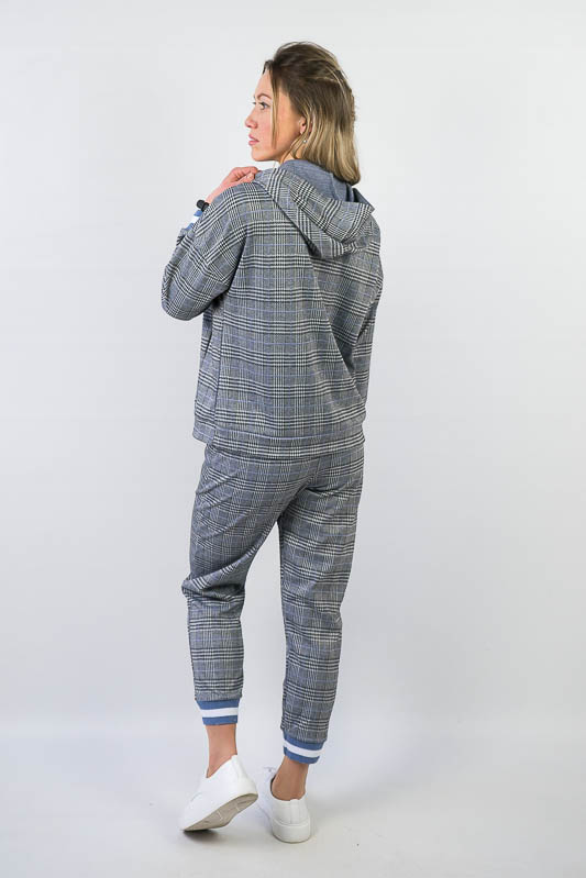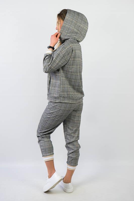 Сучасні спортивні костюми вражають своєю різноманітністю. Основне правило цього виду одягу – максимальна зручність та вільність руху. Такі костюми ідеально підходять під будь-який тип фігури. У прагненні виглядати стильно і неперевершено жінки обирають неординарний спортивний одяг. ТМ «Гном» пропонує жіночий костюм у клітинку, в якому ви будете мати яскравий зовнішній вигляд. Об’ємний худі з місткими кишенями та зручним капюшоном відмінно поєднується з укороченими штанами прямого крою на еластичних манжетах. Костюм зручний та комфортний. Виготовлена модель з французького трикотажу. Це м'яке на дотик полотно, завжди ідеально сидить по фігурі та рідко з часом кардинально втрачає форму. Вироби з такого полотна не тільки можуть зберігати форму без прасування, але і володіють властивістю терморегуляції: взимку в такому одязі тепло, а влітку не жарко. До складу французького трикотажу входить 20% бавовни та 80% поліестеру. Чим більше в складі синтетичних матеріалів, тим краще виріб переносить прання у пральній машині та швидко сохне.