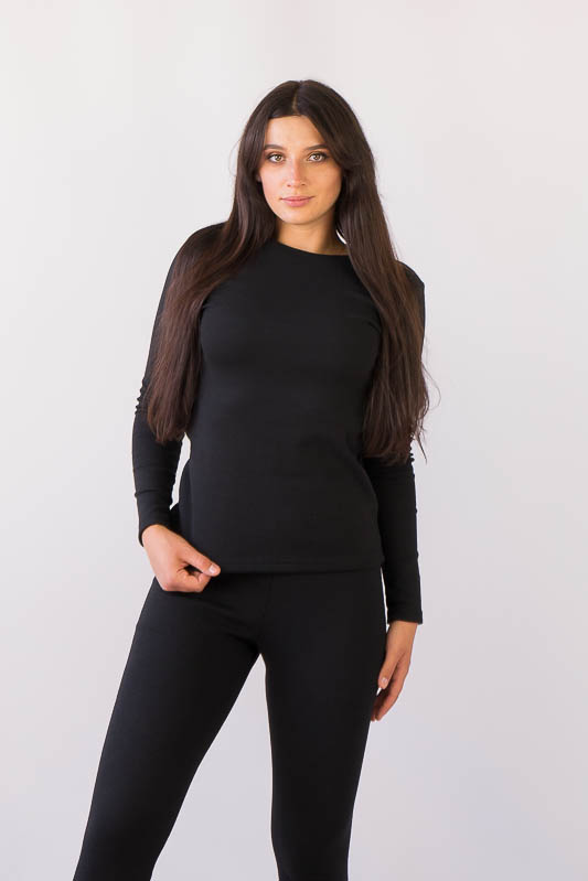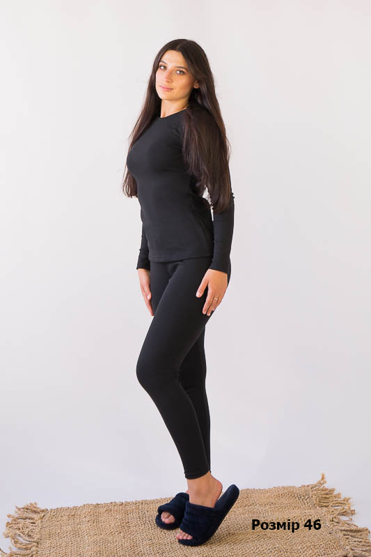 Теплоощадні властивості - це одна з основних функцій термобілизни. Цей додатковий вид одягу рятує від холоду та розрахований на невисоку фізичну активність при мінусових температурах. У такій білизні тепло та затишно. Жіноча термобілизна від ТМ «Гном» складається з облягаючого джемпера та лосин, що виготовлені з еластичного трикотажного полотна. Зворотний бік - це ворсиста поверхня. Матеріал має високу розтяжність, дуже добре тримає форму. Через те, що основою його є бавовна, то він пропускає повітря і дозволяє шкірі дихати. Термобілизна підходить для повсякденного носіння в прохолодну пору року. Прати виріб рекомендується при температурі не вище 30-40°C. Прасувати потрібно з лицьового боку.