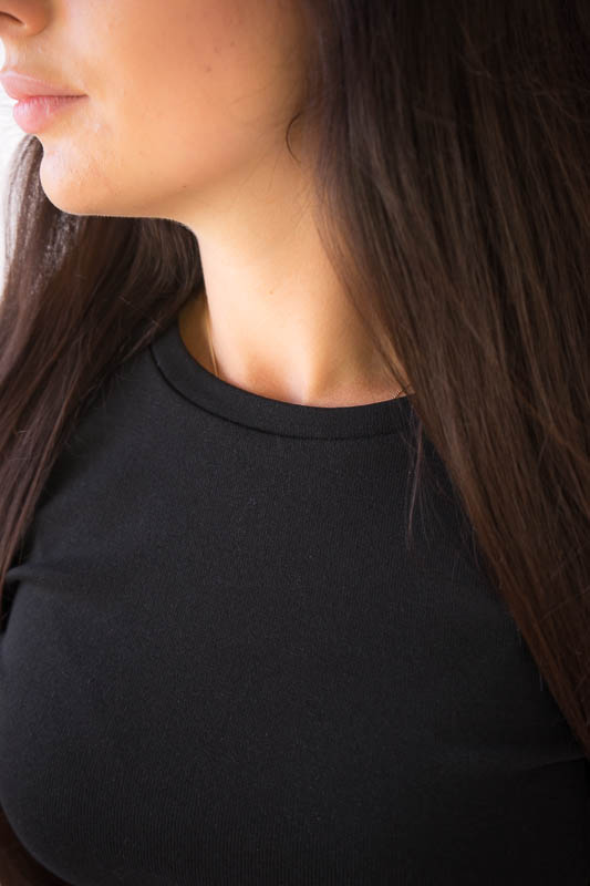 Параметри моделі: обхват по грудях 93 см, талія 67 см, стегна 93 см, зріст 172 см, розмір на моделі 46.