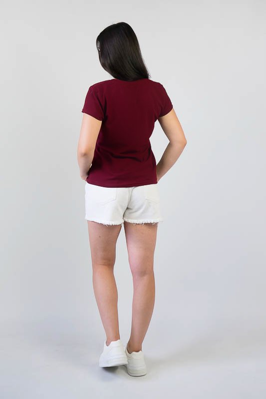 Однотонна футболка - це базовий предмет гардероба кожної жінки. Вона зручна, легка, проста, підходить практично для будь-якого стилю одягу. Футболка від ТМ «Гном» виготовлена з м'якого та легкого трикотажного полотна – фулікра. Це стрейчевий кулір, що складається з 95% бавовни та 5% лайкри. Полотно еластичне та приємне до тіла. Матеріал має гарну гігроскопічність, не викликає алергію. Виріб невибагливий у догляді, його можна прати при температурі до 40°C у делікатному або ручному режимі, не використовувати відбілювачі або порошки з відбілювачами.